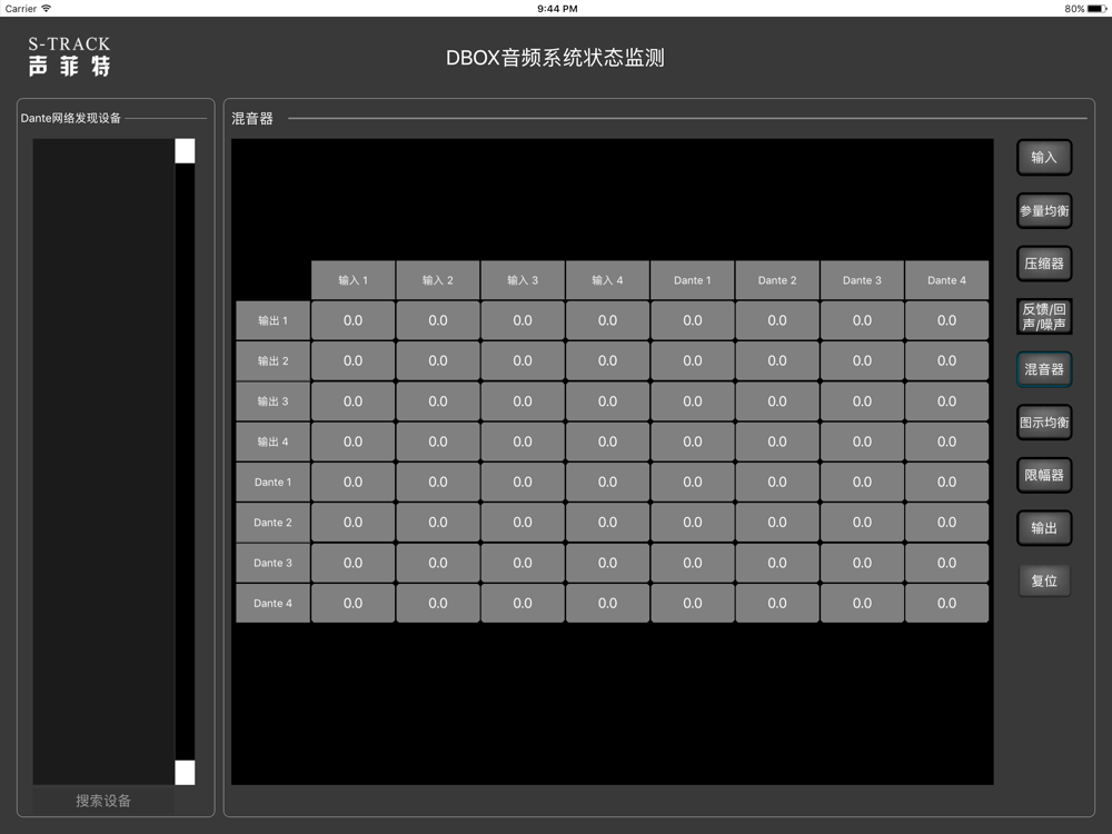 AudioTune是安装在iPad平板上的APP客户端。可以实现对全系列音频处理器设备的可视化调节,包括输入输出增益、幻象供电、各种自带处理模块、矩阵混音等等,同时具备快速静音、各模块开关,快速切换设置场景等方便的操作界面。稳重简约的设计风格,全景式功能菜单,配合快速操作栏,可以非常方便的对处理器进行各项操作。一切只为给您更好的用户体验。