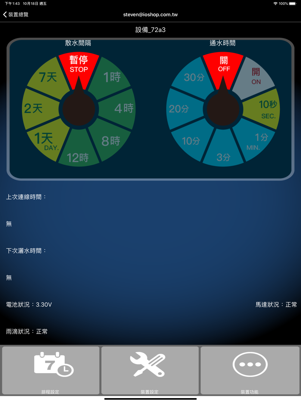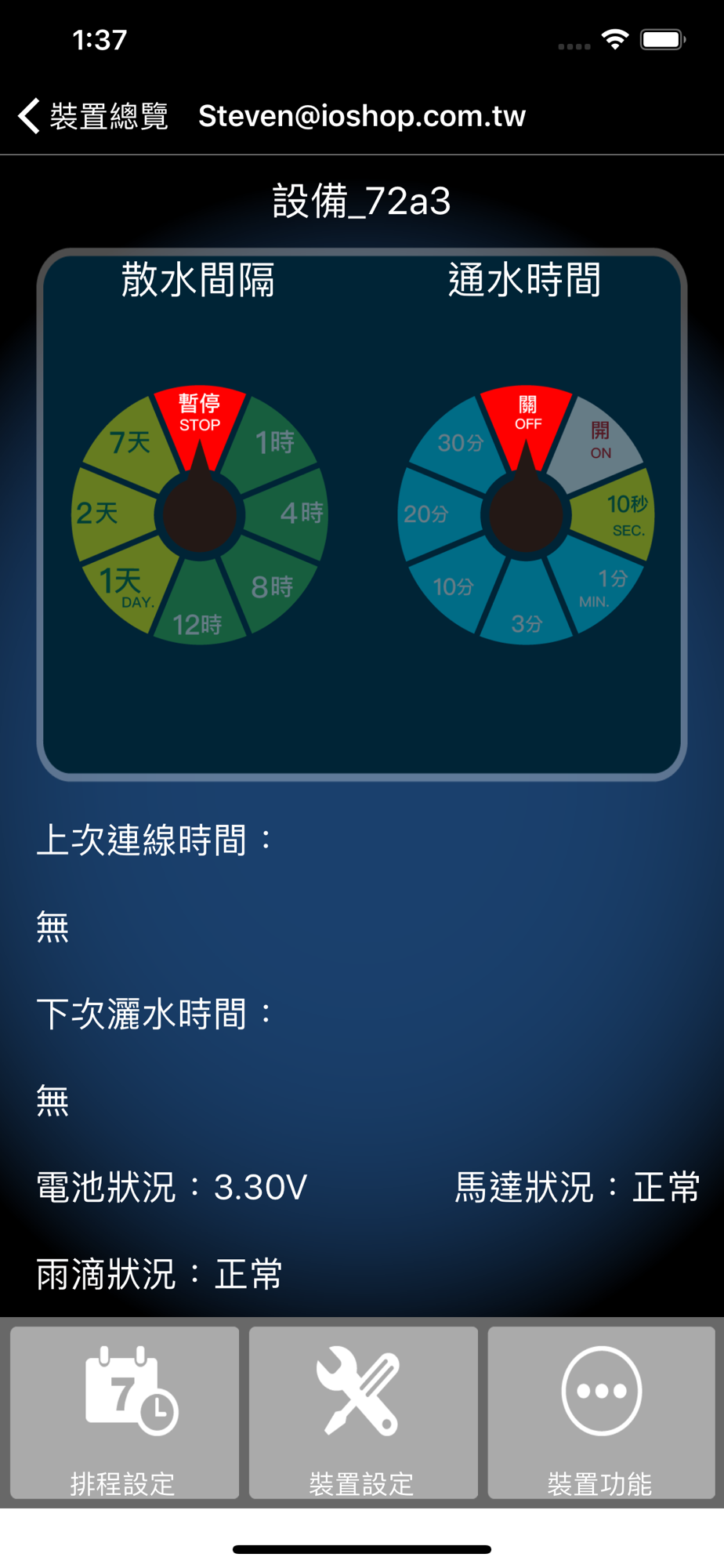 綁定帳號後可以一次管理多個灑水器,一次看到所有灑水器的狀態,不用一個一個查看。
