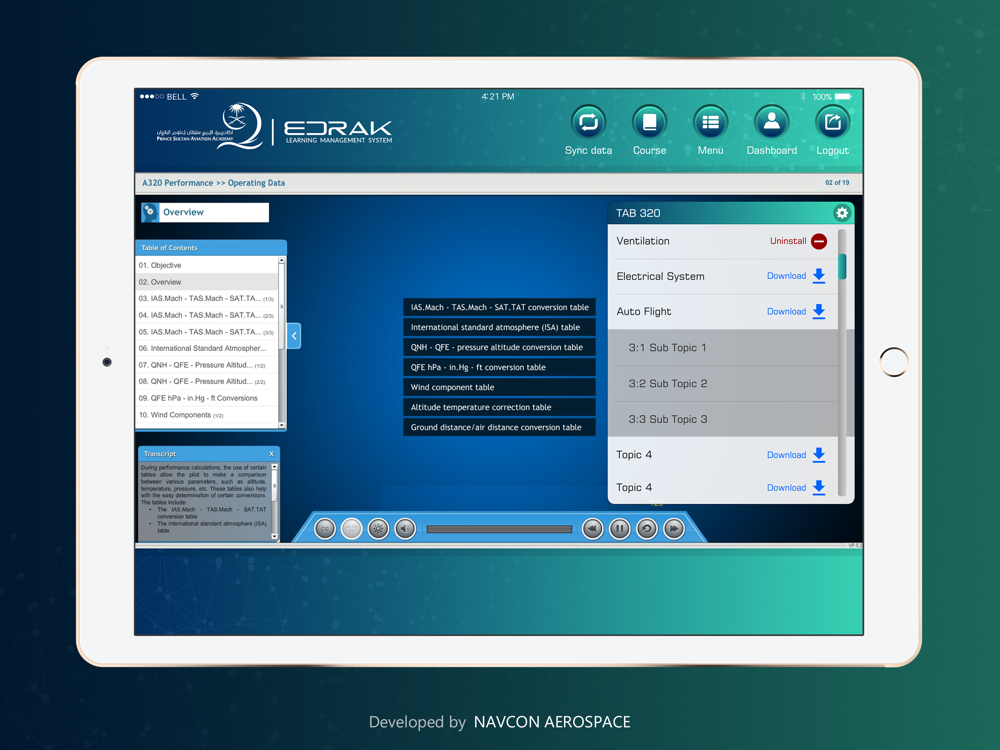 The courses that the users will undertake are highly interactive and has real-time simulation effects. The E-PSAA-B787 App was developed by Navcon Aerospace to increase the accessibility of our Computer Based Training courses. Using the E-PSAA-B787 app the course reading and assessment can be undertaken either in the online mode or the offline mode.