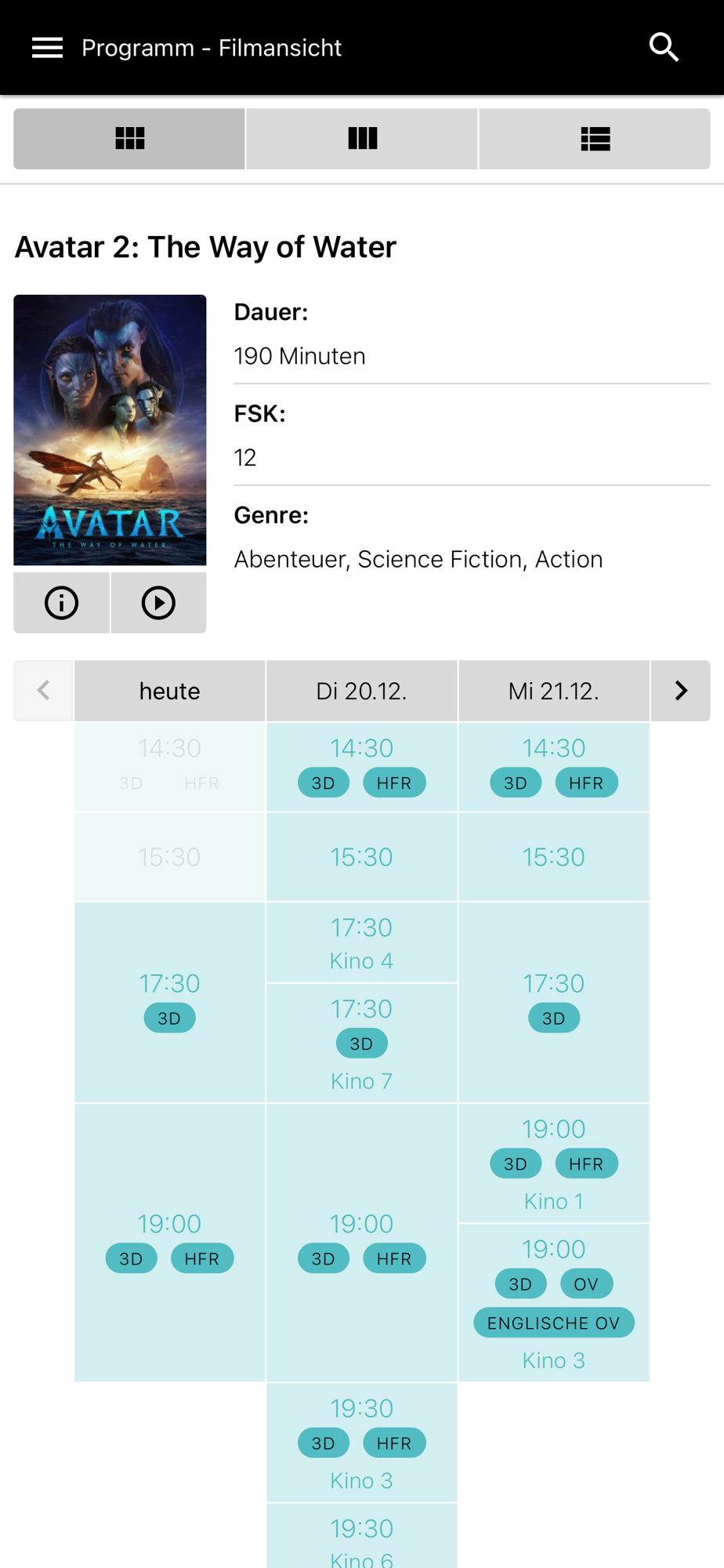 Hier kaufst Du in unter einer Minute Kinotickets für Deinen Lieblingsfilm. Schnell, sicher, einfach und ohne Anstehen an der Kinokasse. Einfach aus dem aktuellen Kinoprogramm Deinen Film buchen und Du erhältst die Tickets einfach & bequem als E-Ticket auf Dein Smartphone und an Deine E-Mail-Adresse.