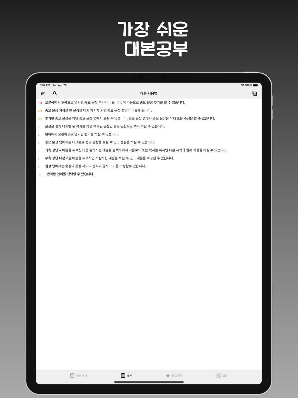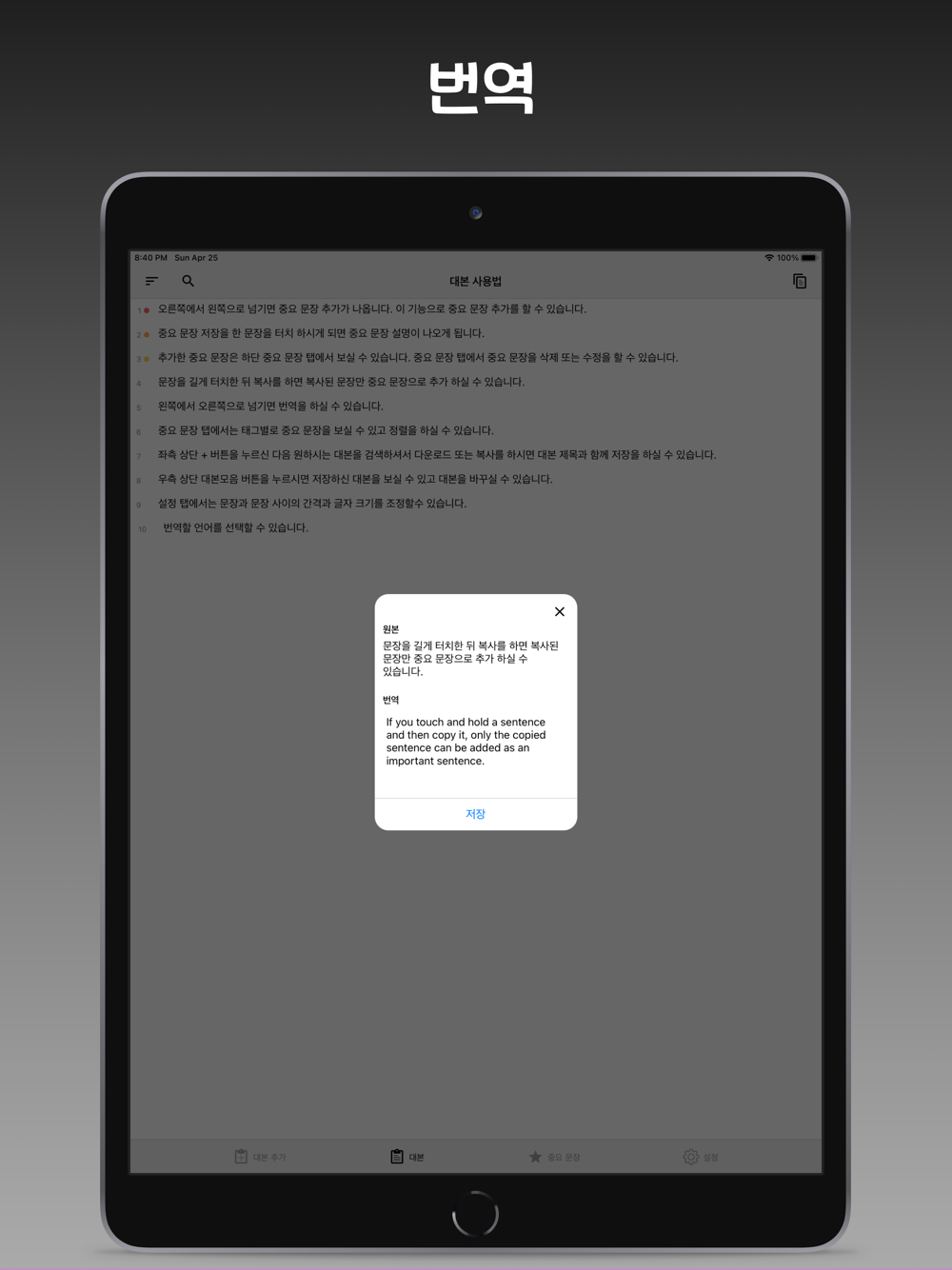 4. 대본, 중요 문장을 번역할 수 있습니다.