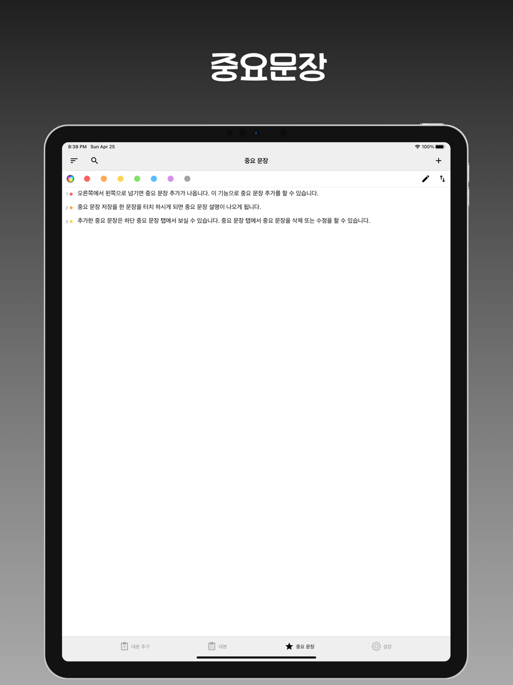 5. 중요 문장에 태그를 선택할수 있습니다.