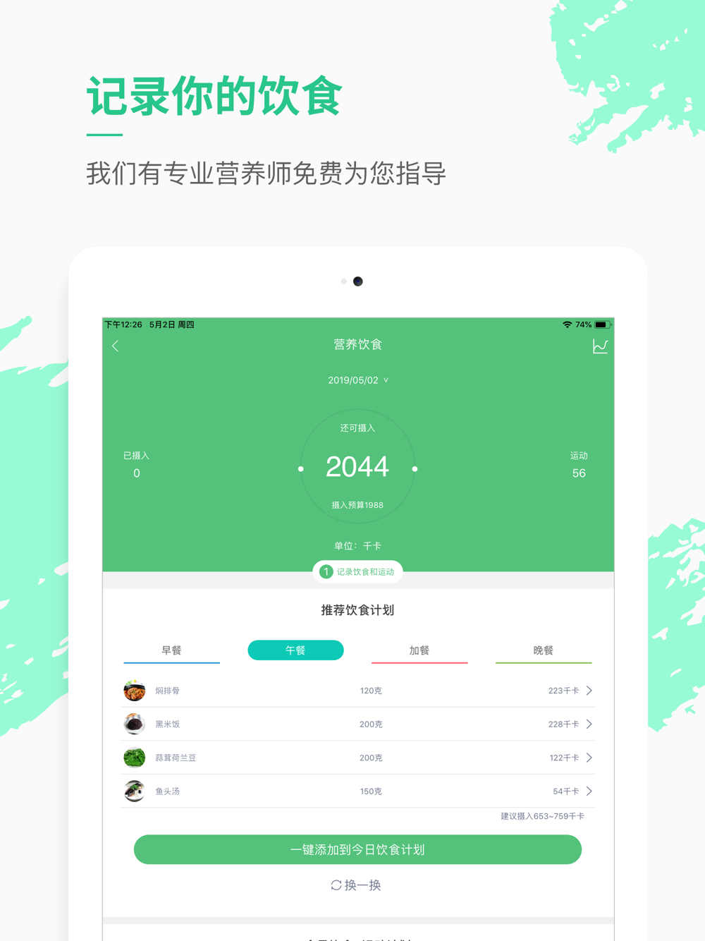 •饮食记录——记录早餐、午餐、晚餐和加餐。