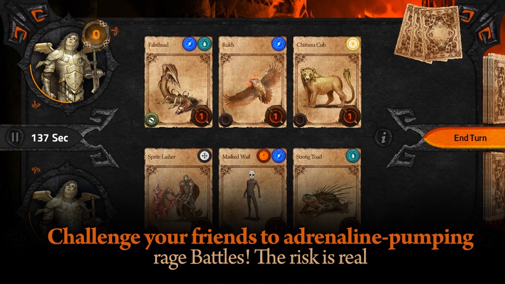 Arena Mode: Pitted against increasingly challenging AI, players are allowed to experiment offline and safely learn all the elements of the game play. Players collect new cards and unlock Heroes playing through the Arena mode, to make their best deck and take their strategy online against real opponents.
