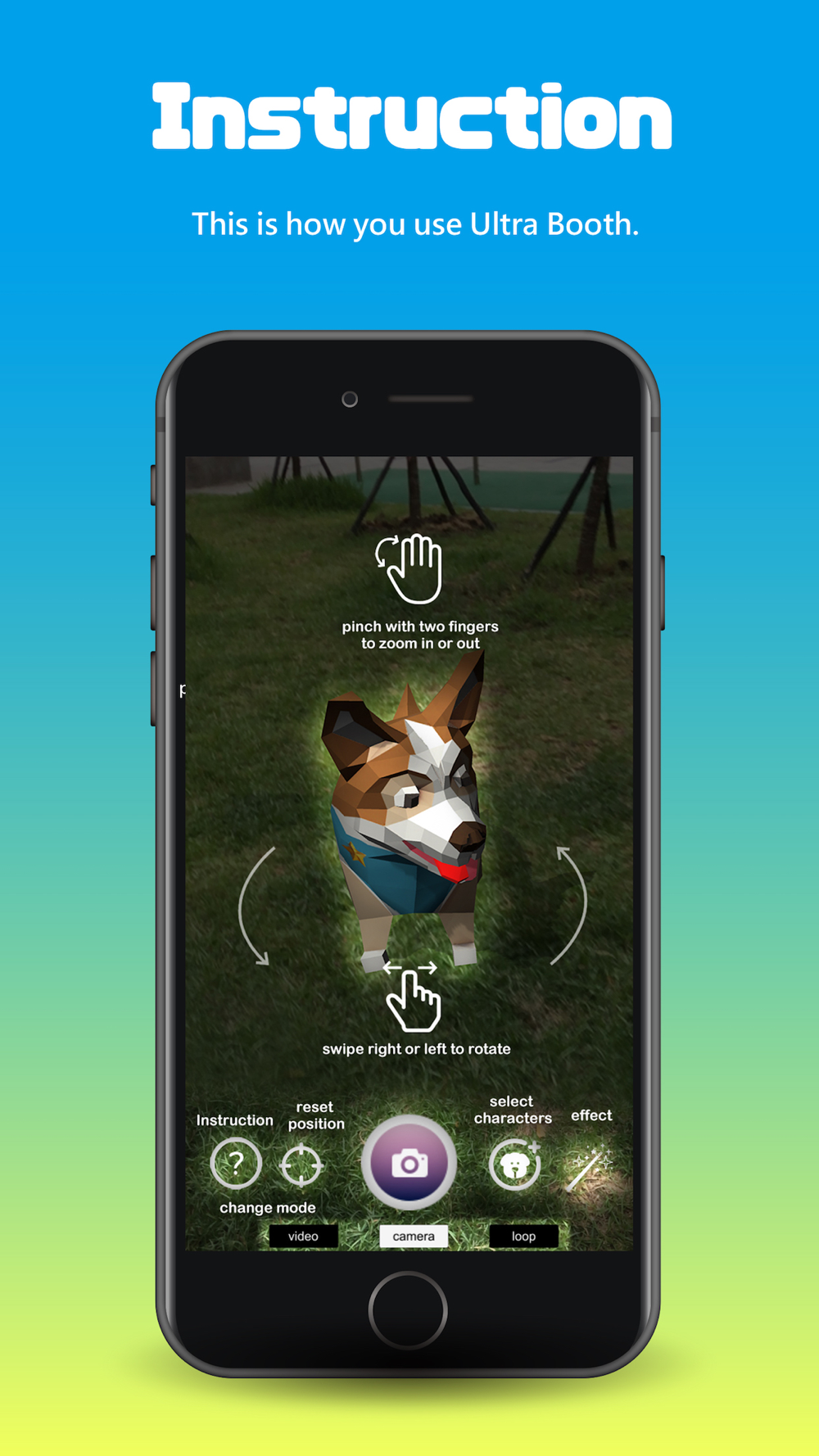"UltraBooth" - is an app, through the phone or tablet free in the real field, put a variety of fun effects to interact, while the integration of real-time camera and dynamic video loop.