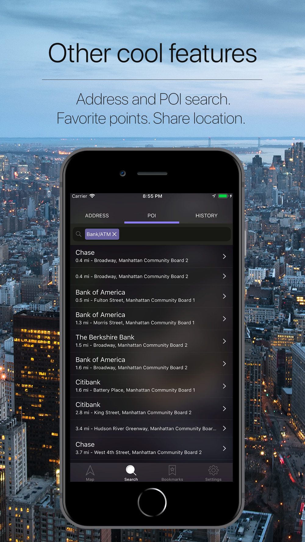 • Find your nearest parking, gas/ petrol, tourist attractions etc.