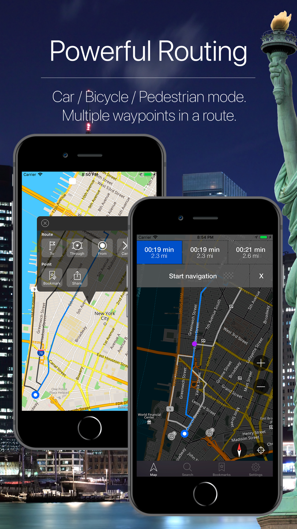 The App contains detailed maps of the biggest cities in New York State: Albany, Amsterdam, Auburn, Batavia, Beacon, Binghamton, Buffalo, Cohoes, Corning and others.