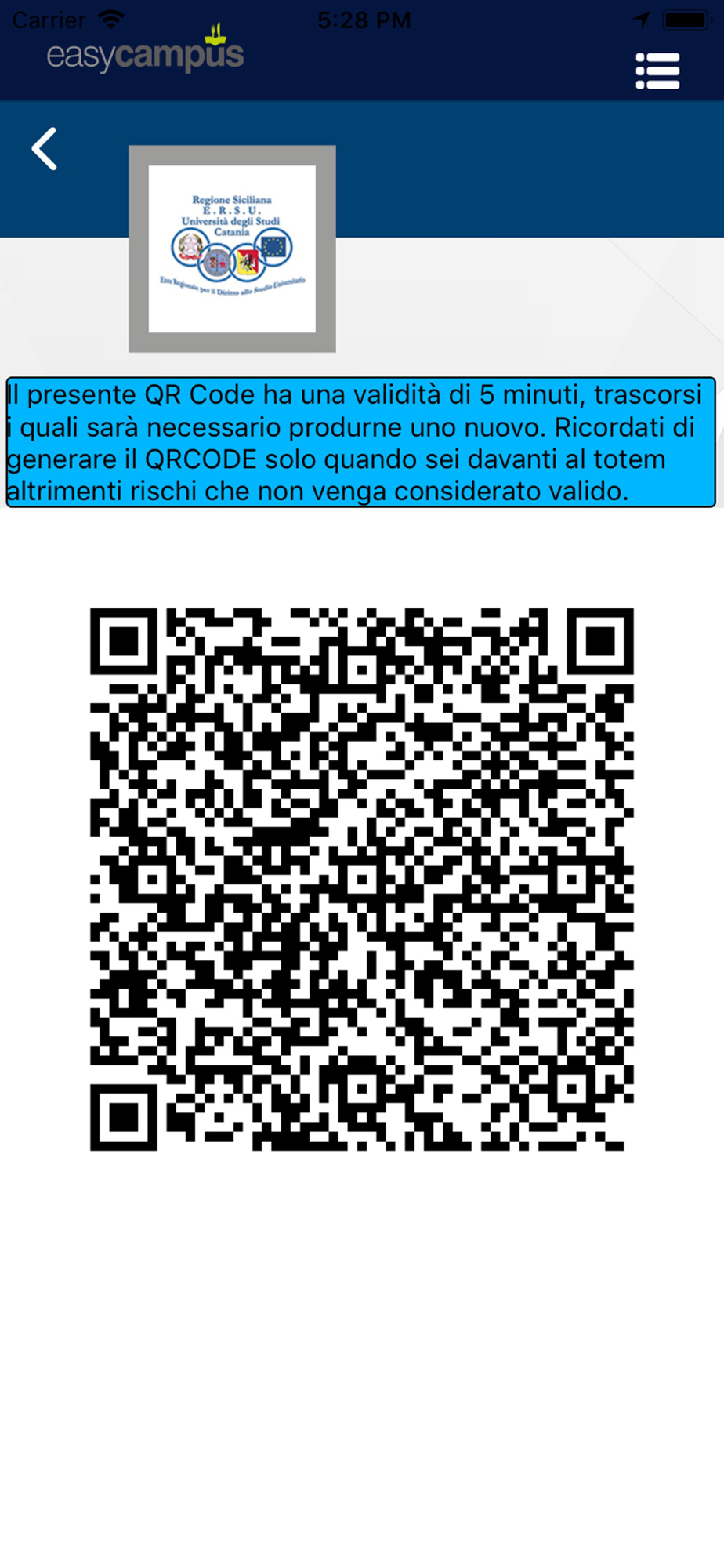 Dopo aver prenotato il pasto, e accostato il codice QR generato sul dispositivo al totem presente in mensa, lo stesso rilascia un ticket con cui lo studente potrà accedere al pasto.