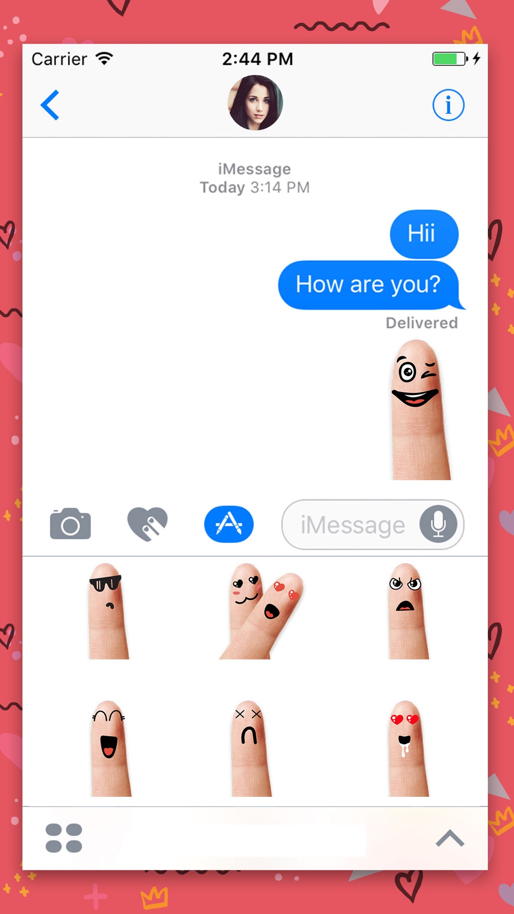 手指笑脸GIF:动画贴纸已变成iMessage贴纸! 准备聊天使用我们的酷时尚手指笑脸动画贴纸! 在你的iMessages的任何地方去皮和粘贴,把乐趣传播给你的朋友!通过时尚富有表现力的现代快乐,悲伤,情侣手指动画贴纸展示你自己的赃物。