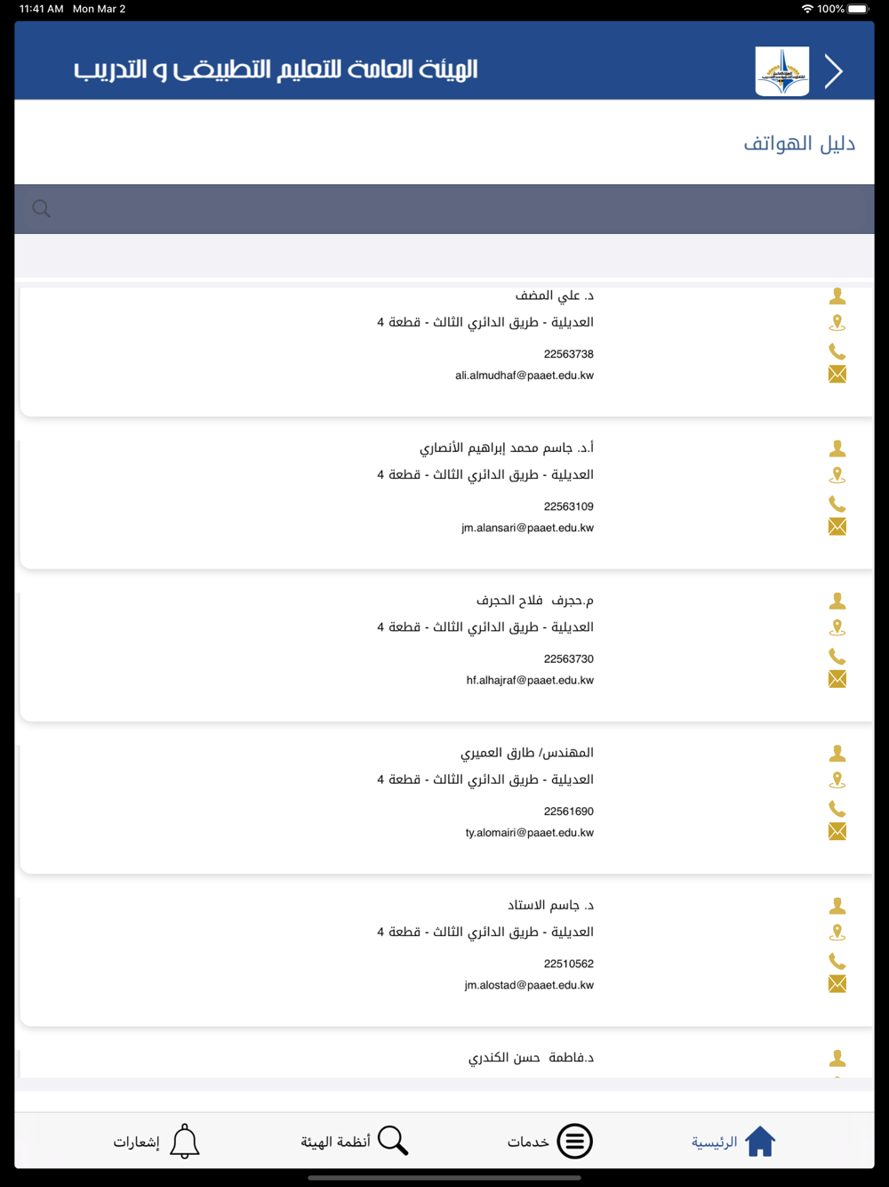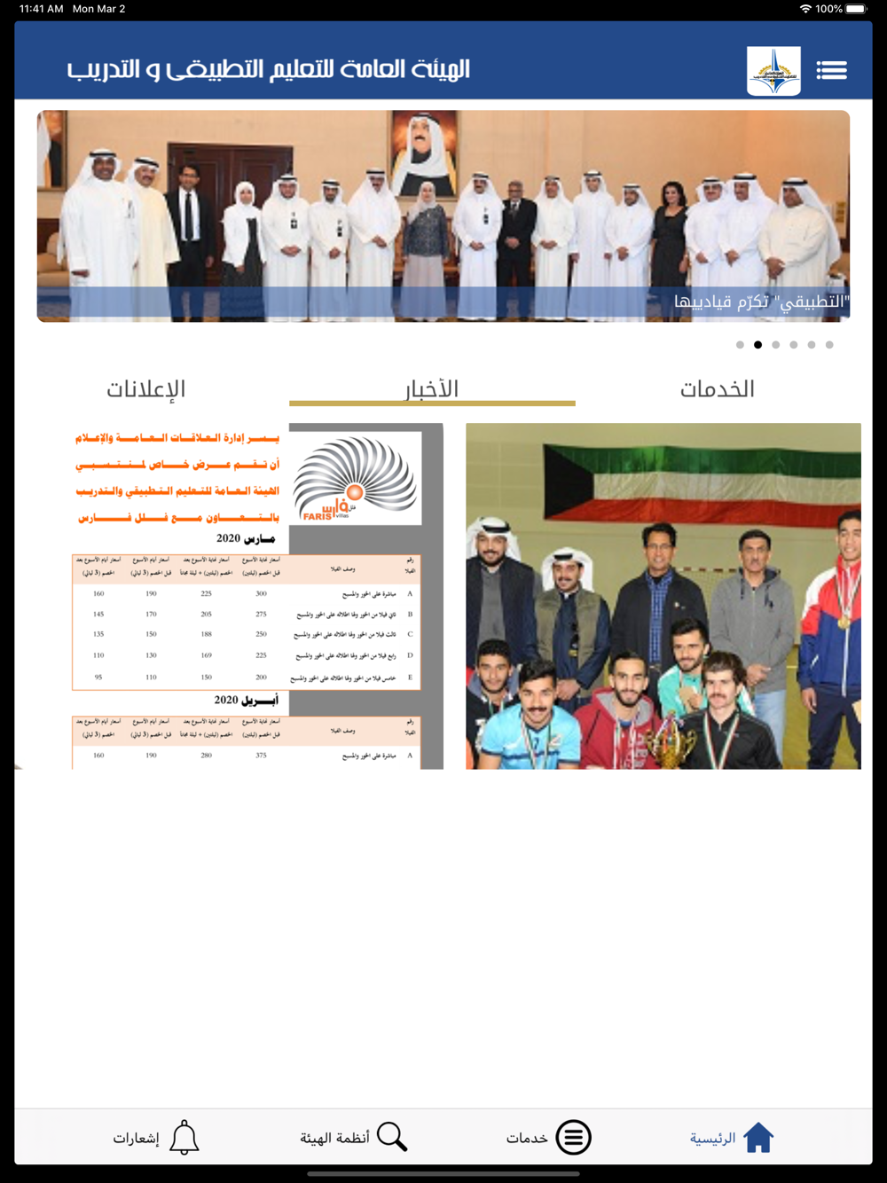 التطبيق الرئيسي للهيئة العامة للتعيم التطبيقي والتدريب الذي سوف يربط بين جميع المستخدمين والمستفيدين من خدمات الهيئة العامة للتعليم التطبيقي مع أنظمة الهيئة. تطوير التطبيق سوف يتم عبر ثلاثة إصدارات هي كالتالي: