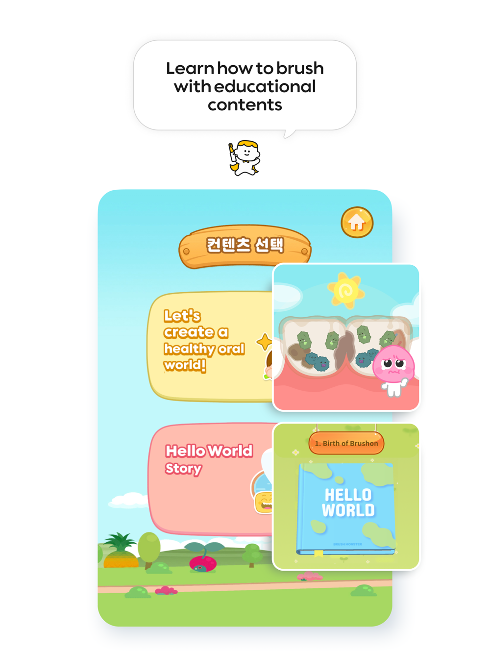 - Using AR (Augmented Reality) technology, children can learn the correct brushing techniques by seeing their own faces, while parents can properly manage their child's dental care through checking the brushing result.