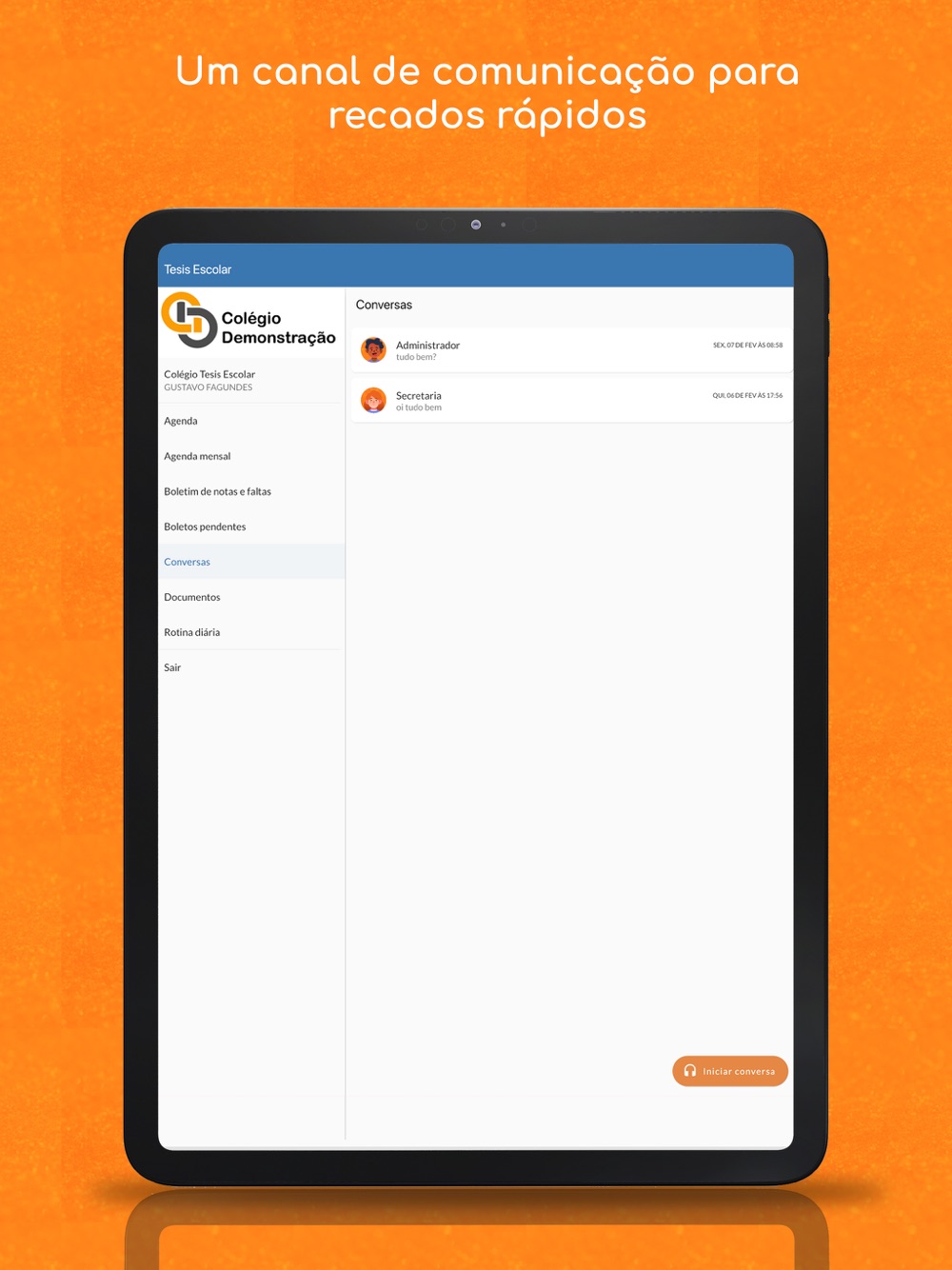 - E chat para poder trocar mensagens com os canais de atendimento do colégio.