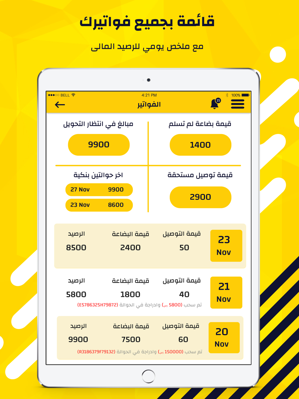 Madar Express Company for the shipment and delivery of orders of online stores, companies and individuals within the city on the same day with the payment service on receipt and also from the site of the company or store to the door of the client through the application or website with ease and security We also offer a storage service products and online stores where We process, package and ship the order directly to the customer and give you full details of your shipments and sales.