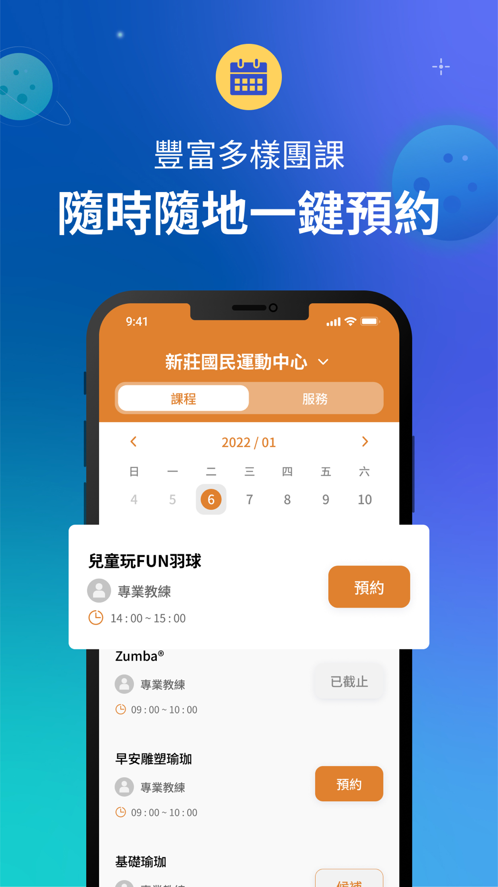 新北最大運動場館,專業且多元的運動設施及課程,提供體適能、游泳、球類、極限運動及韻律有氧等各式課程。您可使用APP挑選喜歡的課程,並可直接線上完成報名手續,多樣課程等您來體驗。