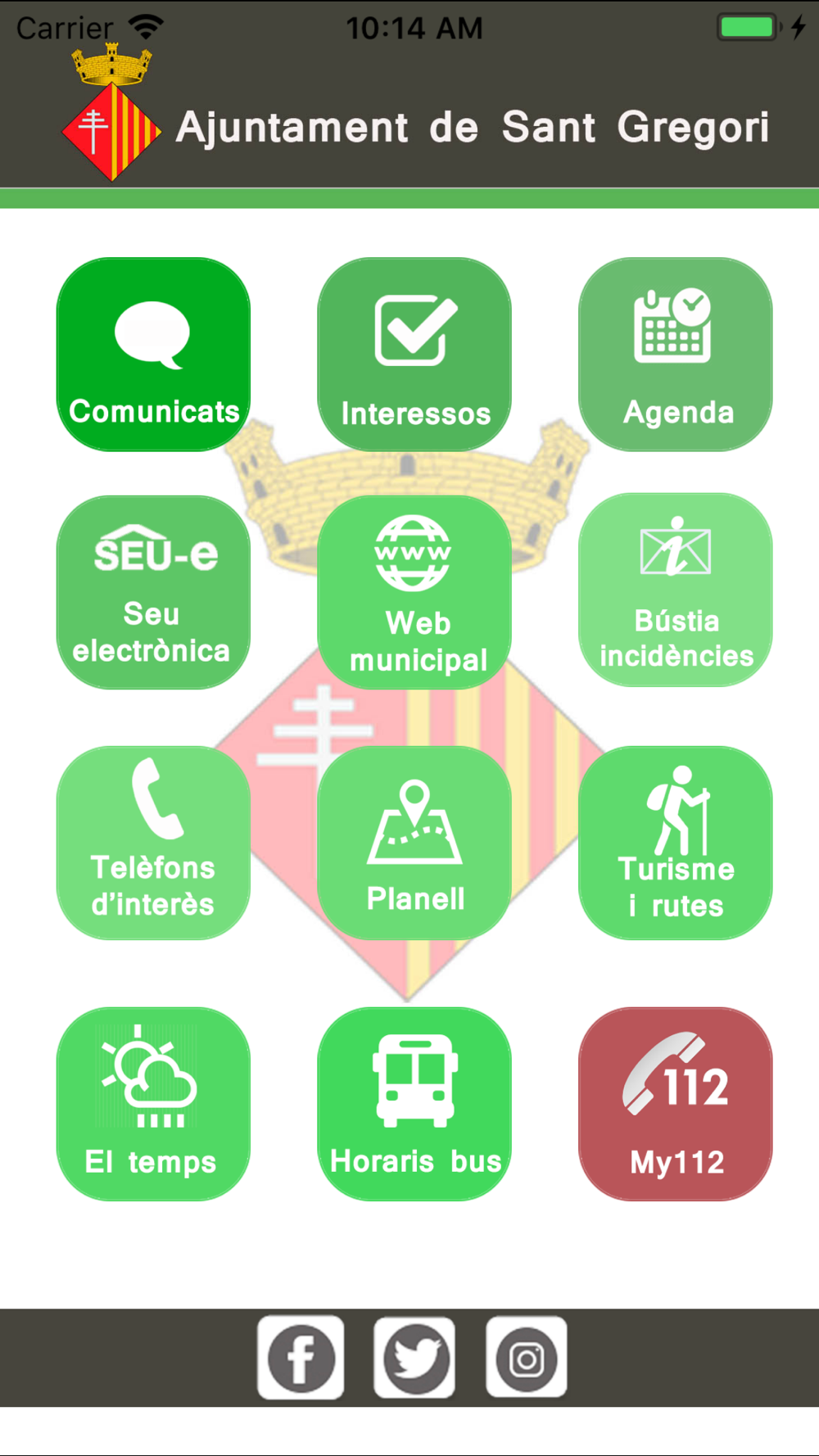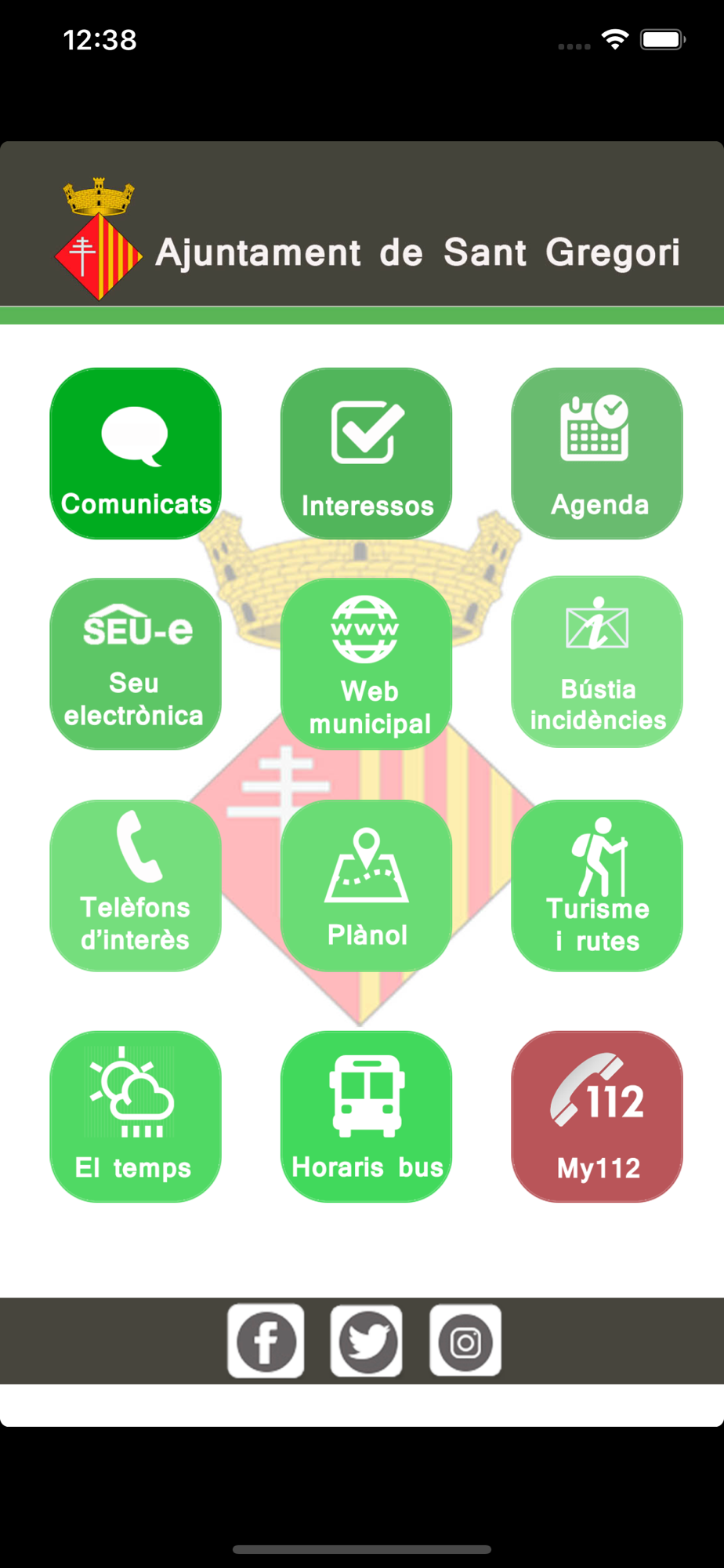 APP de l'Ajuntament de Sant Gregori. L'aplicació permet una comunicació directa entre l'ajuntament i els vilatans. Consta d'una primera pantalla amb un menú amb diverses opcions: secció de comunicats enviats per l'ajuntament, secció "Interessos" on l'usuari defineix els tipus de comunicats que vol rebre, secció "Agenda", llistat de telèfons d'interés, accés directe a la web de l'ajuntament, secció per a la comunicació d'incidències i diverses seccions informatives i APPs externes.