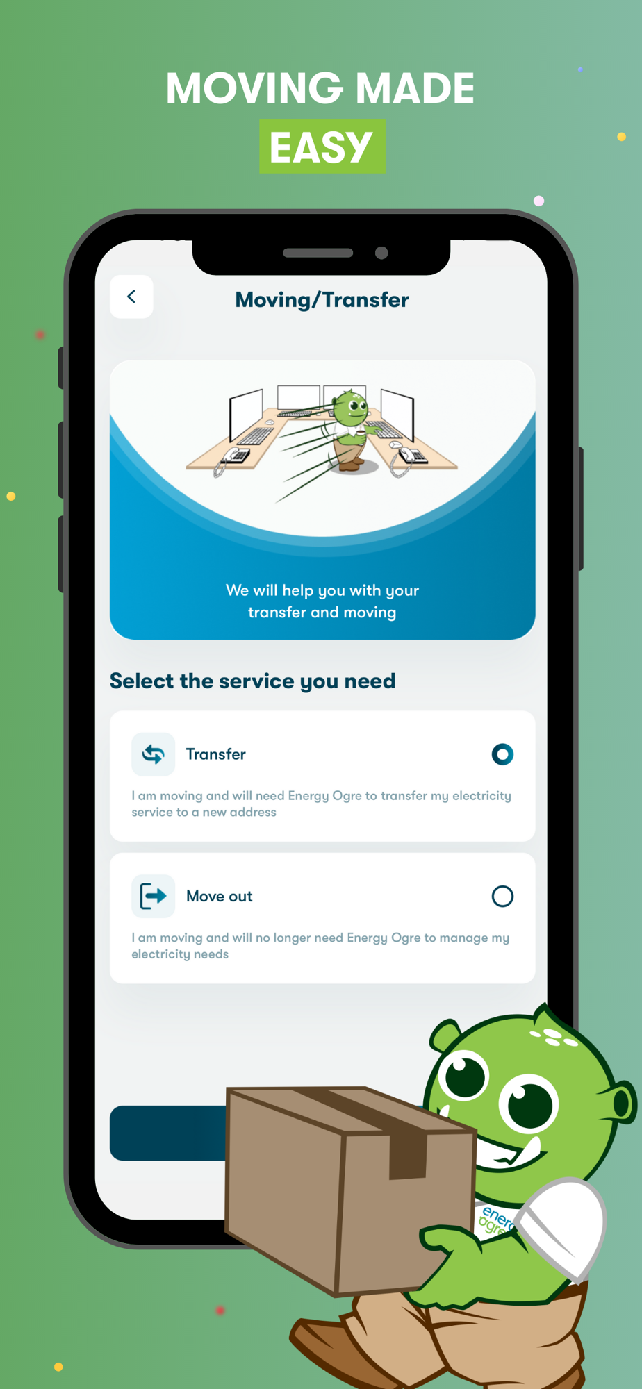 Sign up for Energy Ogre to ensure you never overpay for electricity again. Energy Ogre is an electricity management company that uses cutting-edge technology and mathematical algorithms to find the best possible plan for your home. From finding you the right plan to enrolling you in it to handling issues that may come up to renewing the plan - Energy Ogre manages all of it! The Energy Ogre app allows you to easily view your account, contracts, monthly usage, and payment history.