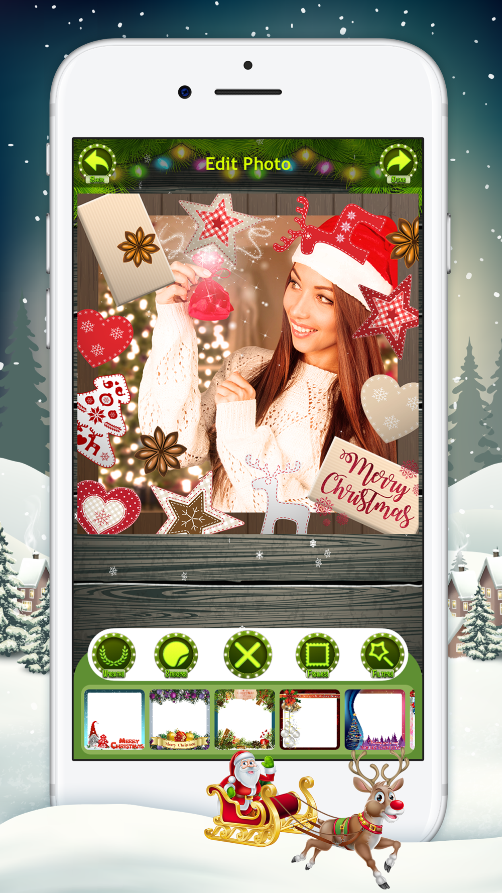 It's magic time of the year! Let it snow! Let's countdown together! This will be the most amazing Christmas of all, with this best new app “Christmas Photo Frames Studio”. Take a picture, decorate it with a frame or a wreath, put one or more stickers and let it snow! So many stickers at one place! Christmas tree, ornaments, special Xmas decorated cookies, a lot of different wreaths, caps, glass ball, jingle bells, elves and many others. Choose your favorites and make fantastic designs with our Photo Booth.