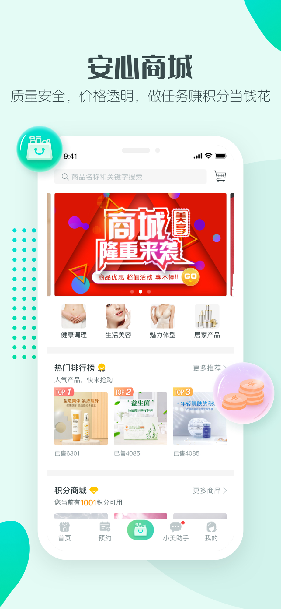 【商城】丰富的美容项目和会员任务,赚积分,兑换当钱花!