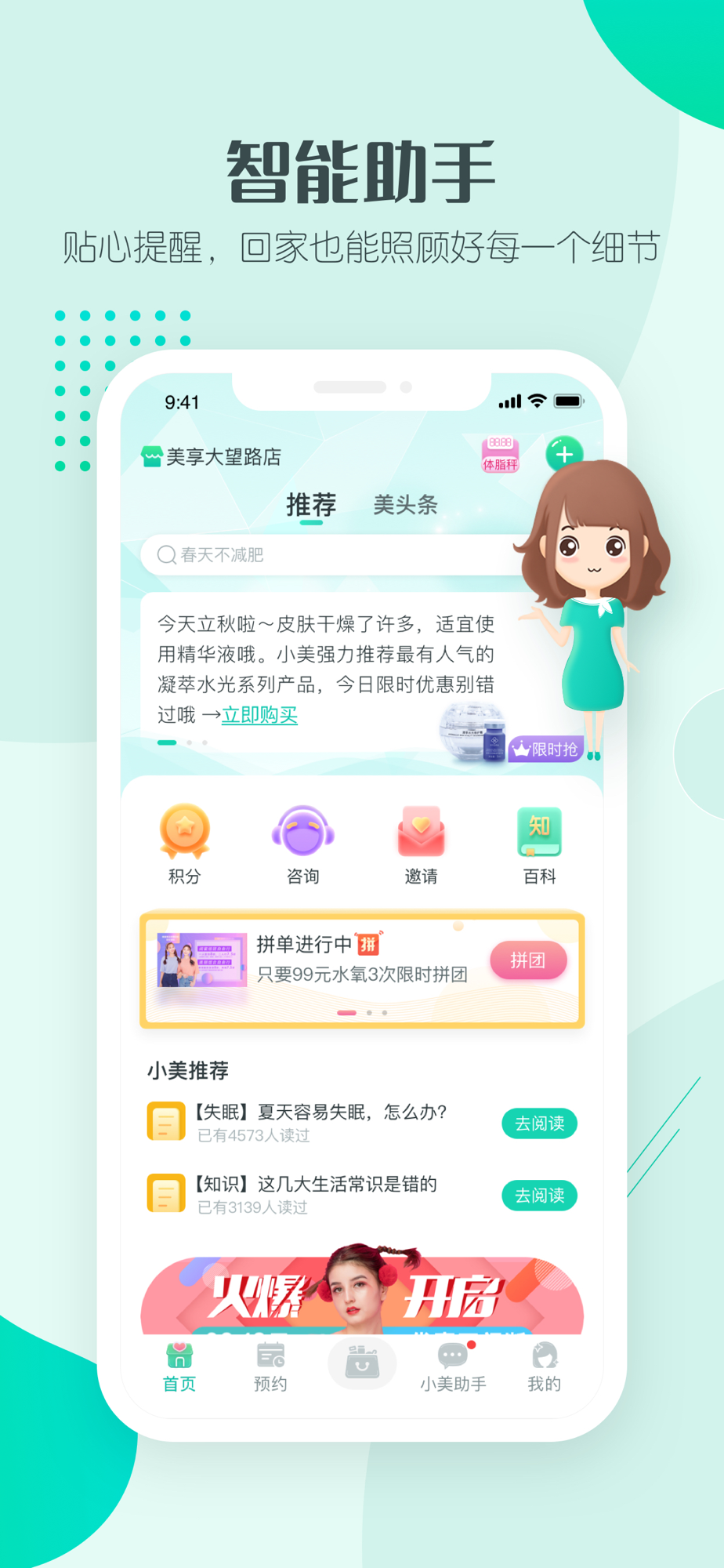 【美享AI】AI智能助手小美,实时推送定制化文章、资讯、活动、美容商品。
