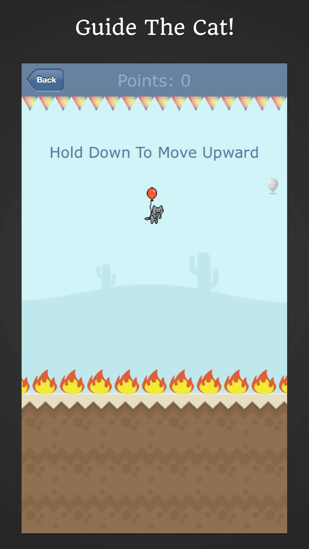 Cat! The Mobile Game is an action game where you control a cat attached to a balloon. Collect the other balloons to gain more points, but try to avoid the mines, the spikes and the fire. Cat! The Mobile Game is Game Center enabled.