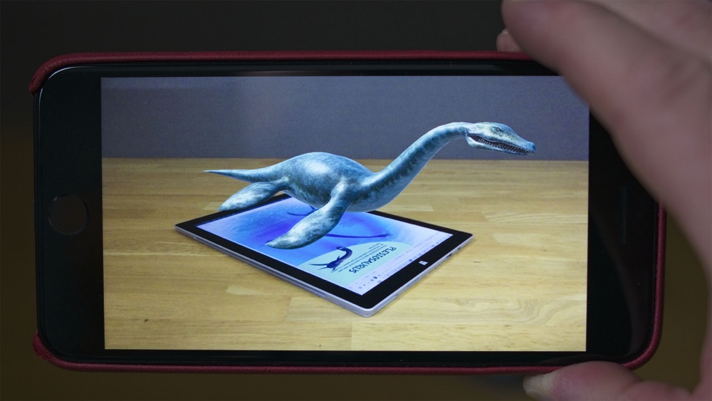 However, it is not just a book. A free application running on smartphones turns the book into an adventure. All you need to do is download the application onto a smartphone or tablet and use it to look at the book's pages. A three-dimensional, animated dinosaur will emerge!
