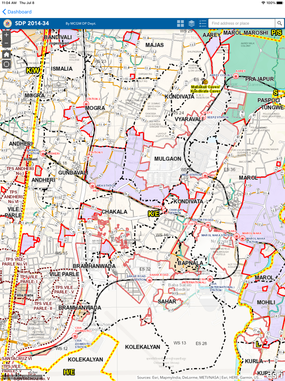 MCGM GIS based mobile application provides information about Reservations in Sanctioned Development Plan 1991 and Draft Development Plan 2034.
