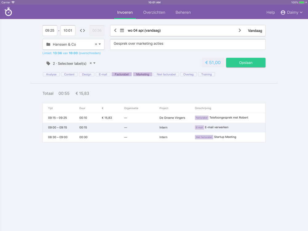 - Weet je niet waar vorige week precies al je tijd in is gaan zitten?