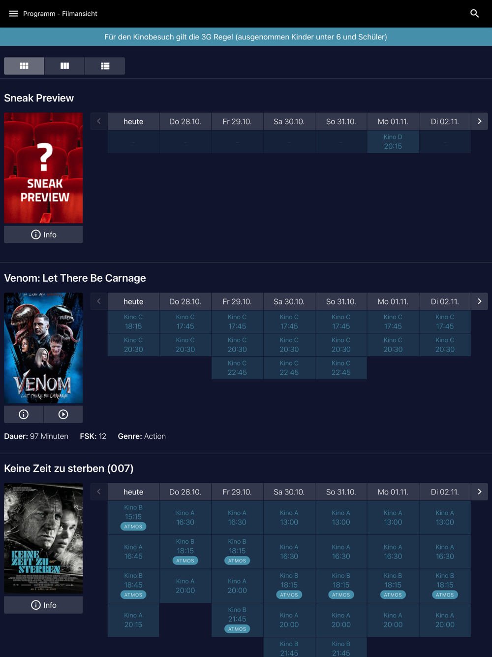 Sichere Dir deine Kinokarten in Dolby Atmos, Dolby 3D oder 4K Highdefinition für Deinen Lieblingsfilm. Schnell, sicher, einfach und ohne Anstehen an der Kinokasse. Einfach aus dem aktuellen Kinoprogramm Deinen Film buchen und Du erhältst die Tickets einfach & bequem als E-Ticket auf Dein Smartphone und an Deine E-Mail-Adresse.