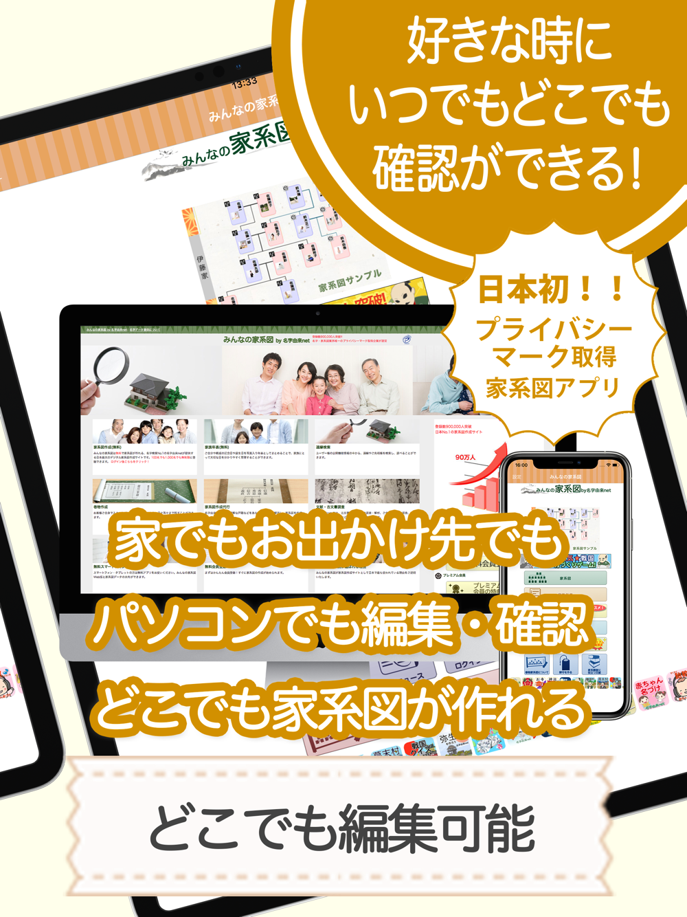 家系図アプリは、家系図取扱業として唯一のプライバシーマーク取得企業が運営しておりますので、安心・安全にご利用いただけます。