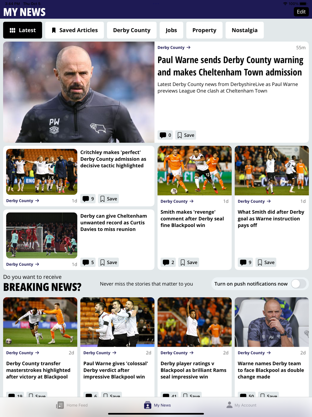Completely customisable, the Derby Live app allows you to tailor what news you consume, and when.