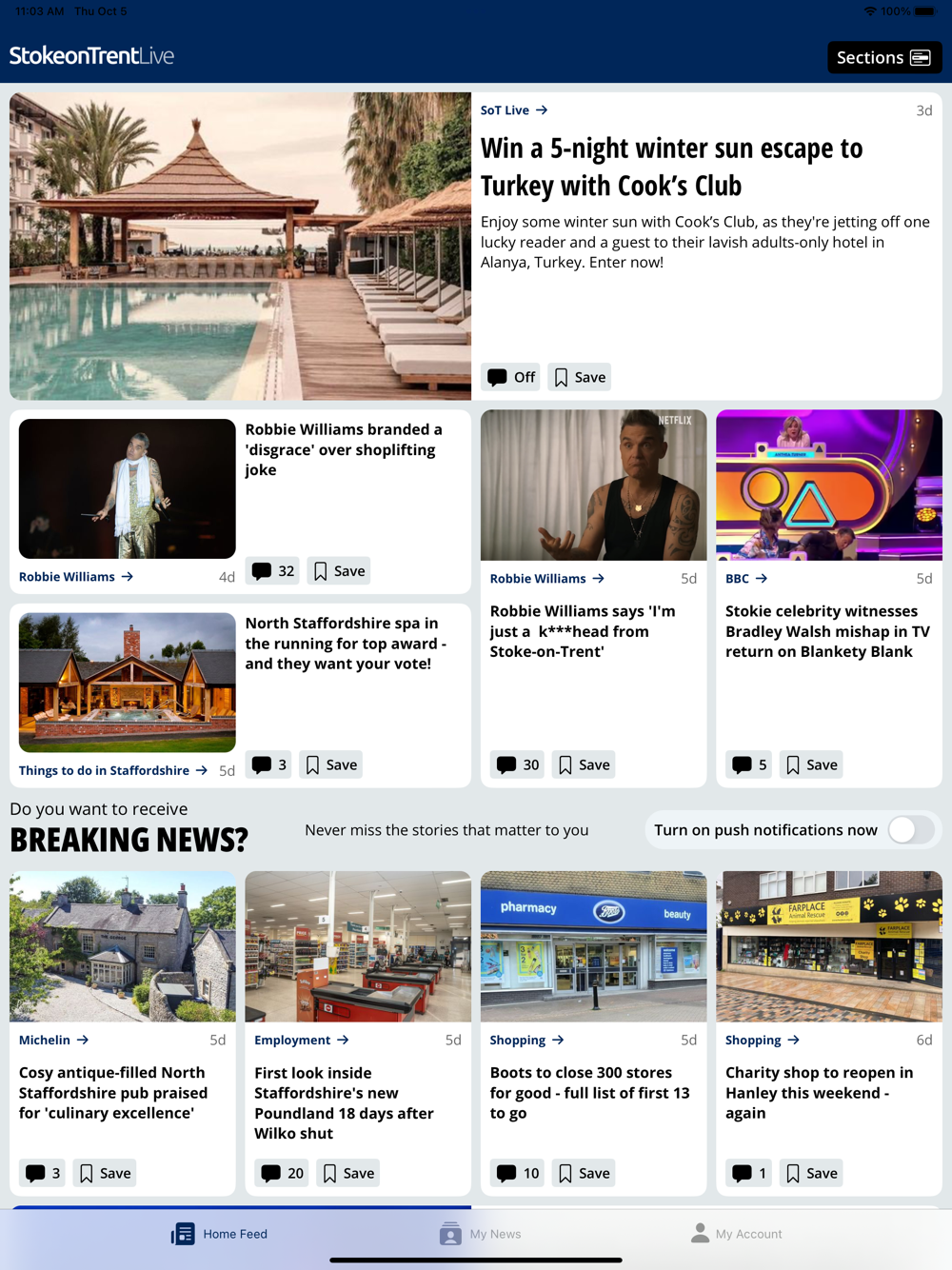 Design your feed to fit you by selecting the topics you’re most interested in - so if you want to know everything happening in Tunstall and Hanley, for example, let us know and we can tailor it for you.