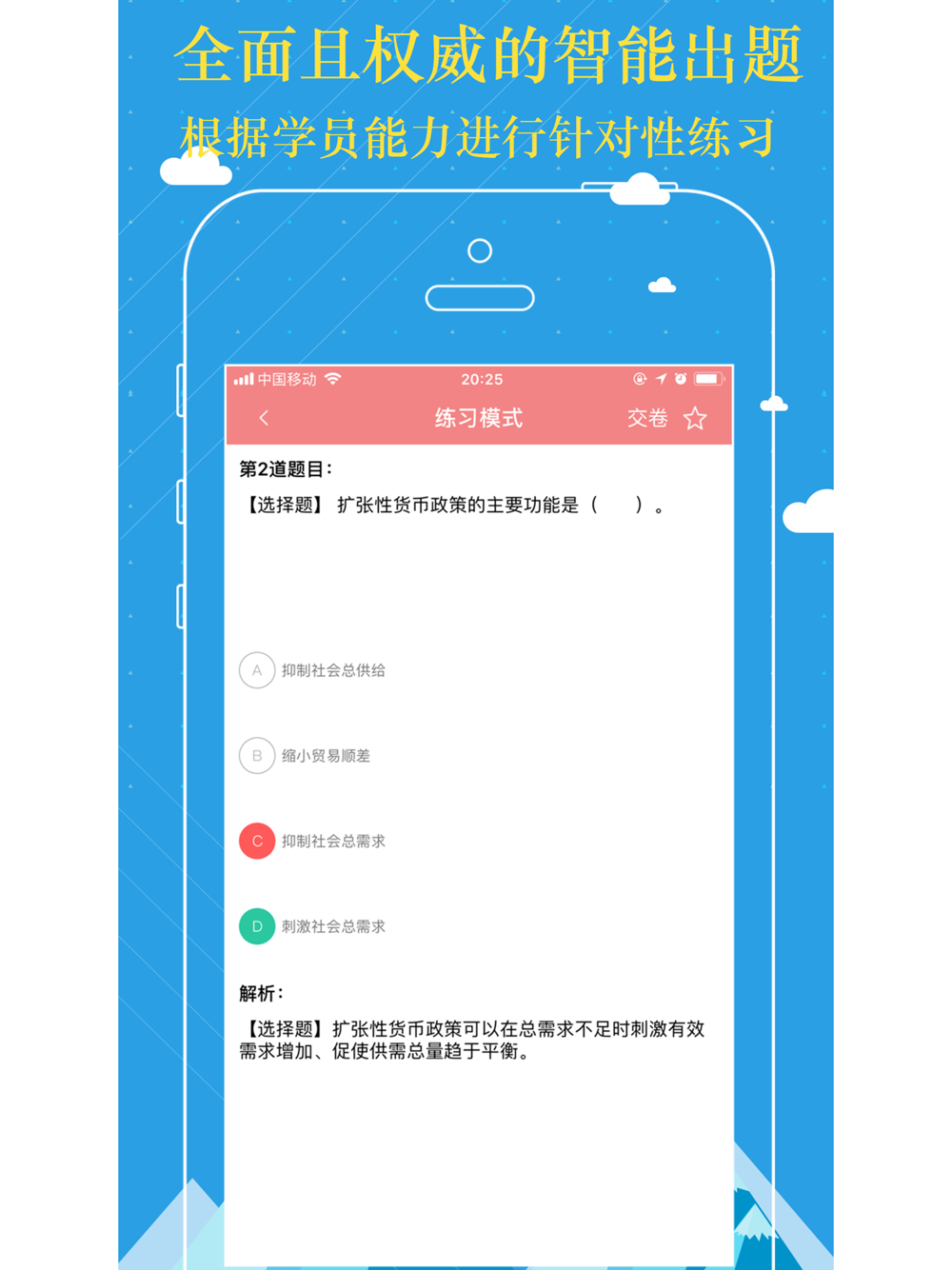 精心整理考试中的每个考点并和题目进行关联,结合后台智能算法,最精准的为考生提供练习题目从而大幅度节省考生的做题时间,使考生做题不再迷茫。