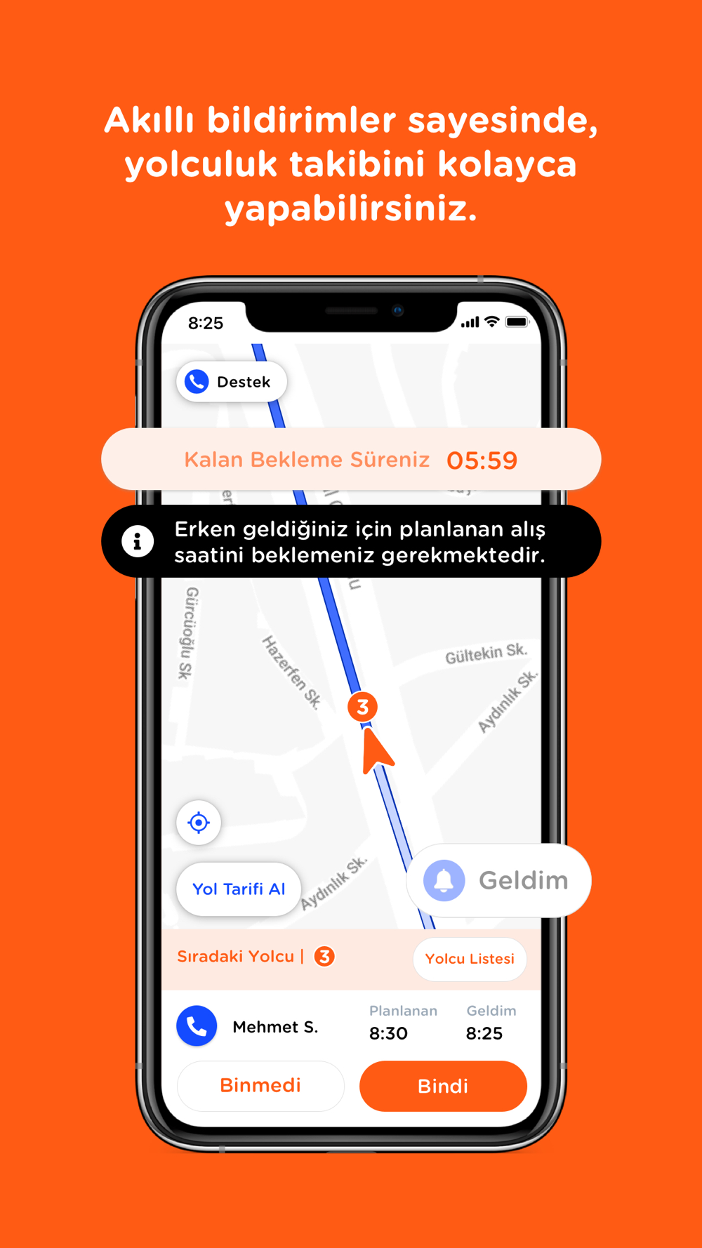 Yolcular sürücüleri uygulamadan görüntüleyebilir.