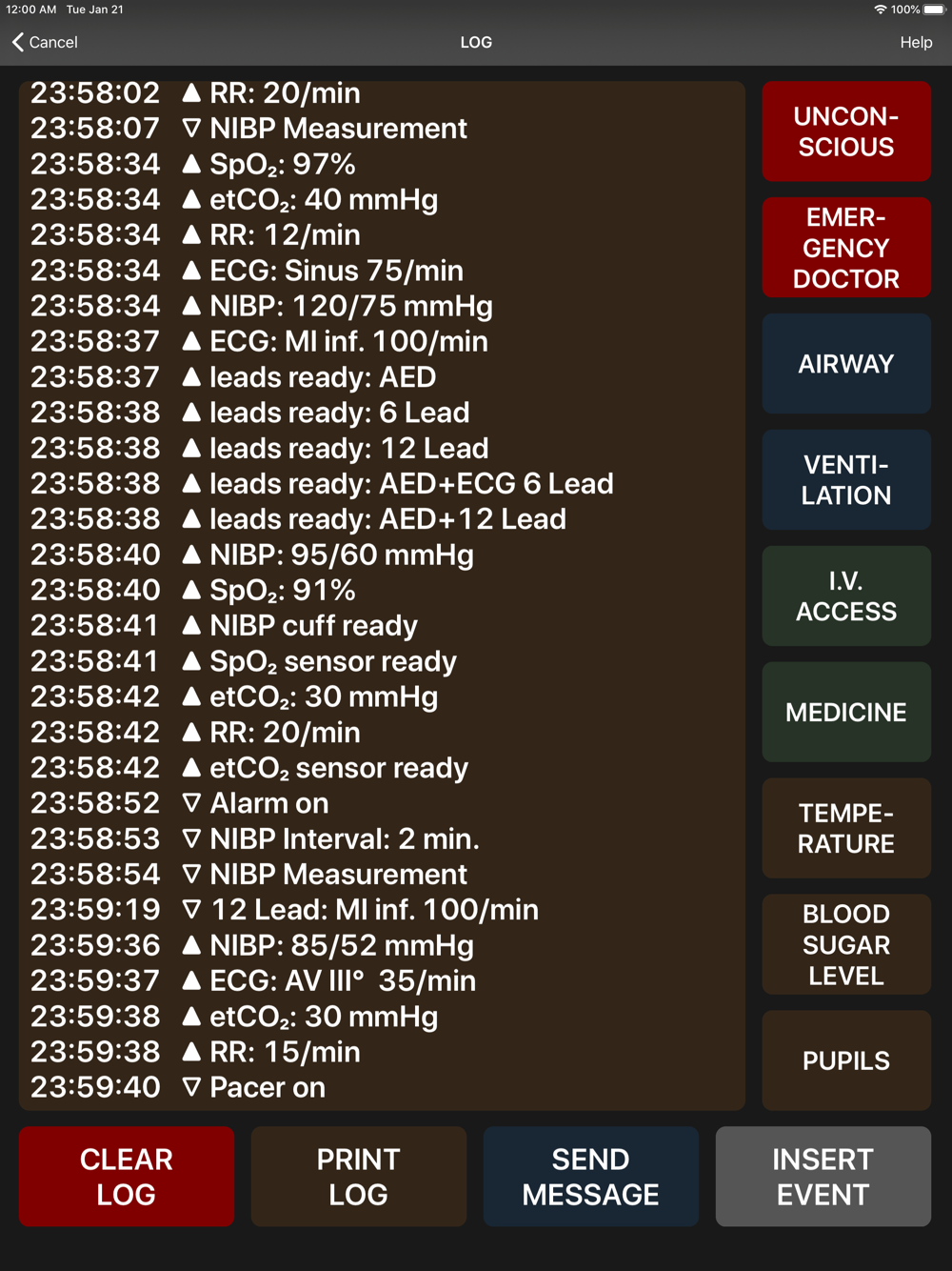 • 30ECG rhythms (including 12 lead diagnostic display)
