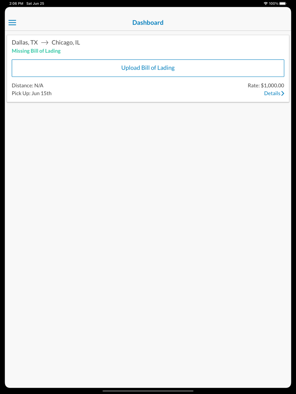 You can view your rate confirmation in the app so you always know what the load pays and you'll have all the load details at your fingertips. You'll be able to update your status throughout the trip and even submit your load paperwork right from your phone, wherever you are. You'll also see a list of completed loads with payment status so you always know where your money is at.