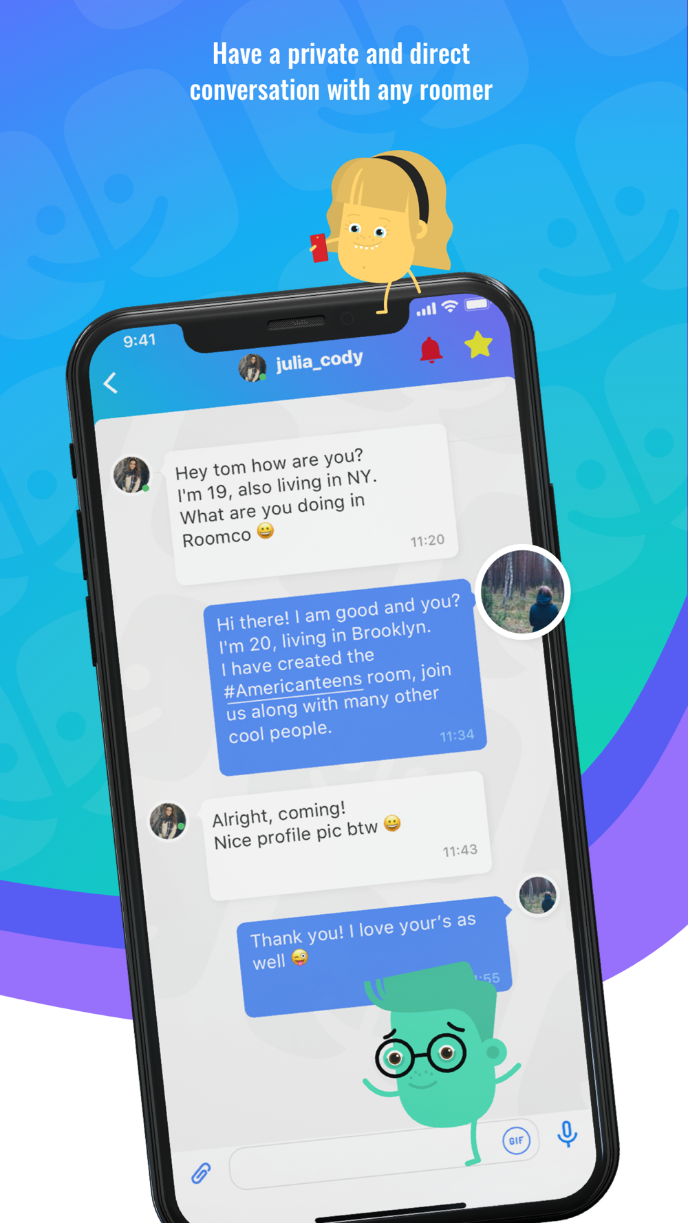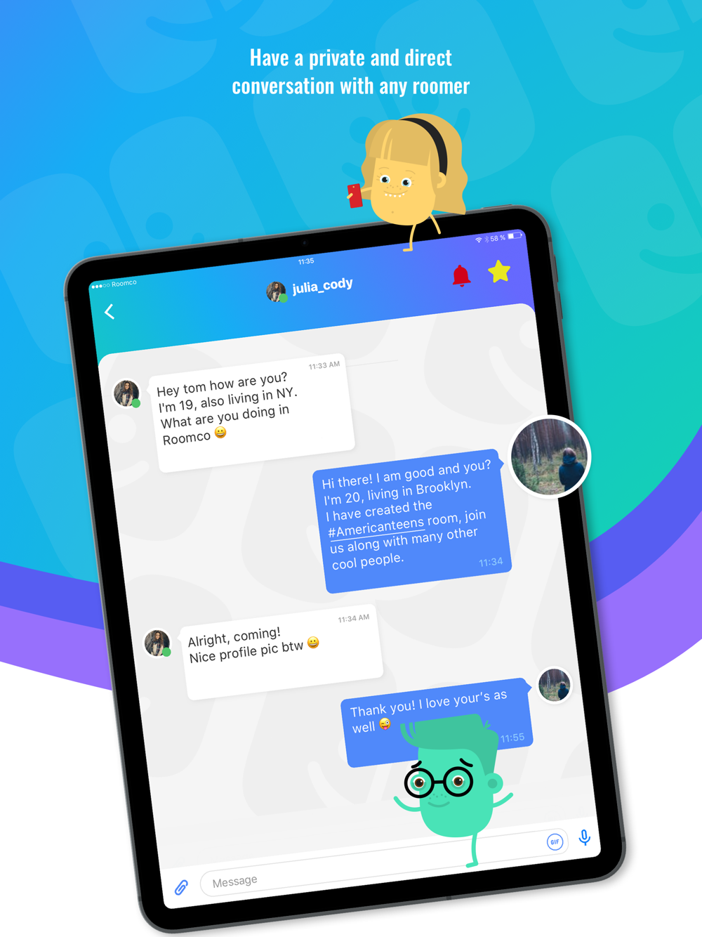 Roomco is a free chat which also has premium features witch will allow you to create and personalize a vip Room :