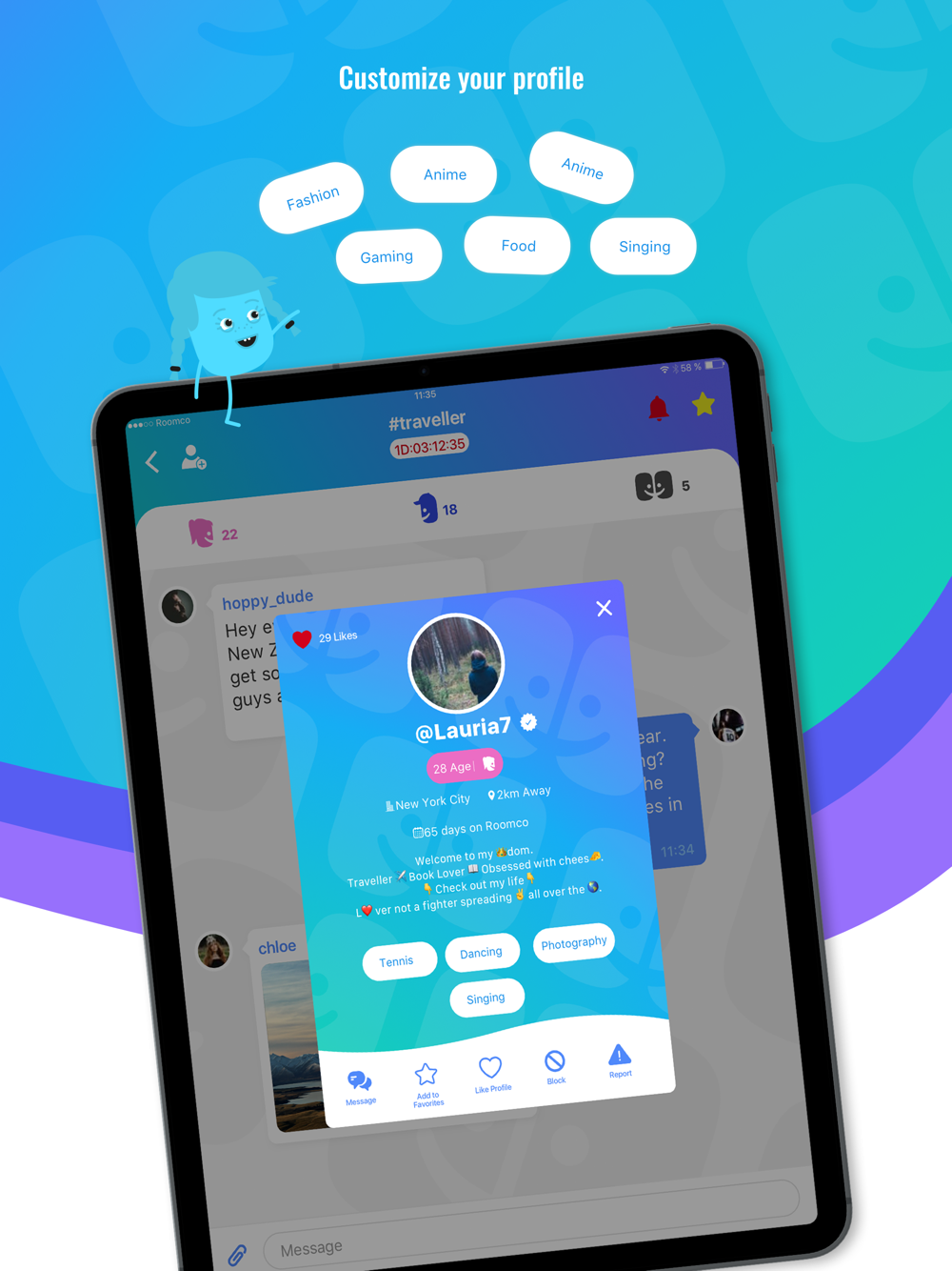 100% live discussion groups. On Roomco you can chat, meet people, make friends, date and have fun !