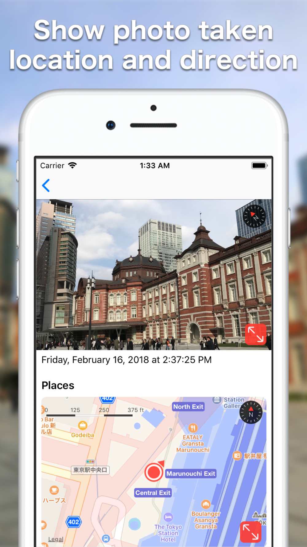 By reading the location information (GPS tag) recorded in the photo and simultaneously displaying the directional photograph and the map, you can easily grasp the positional relationship at the time of shooting.