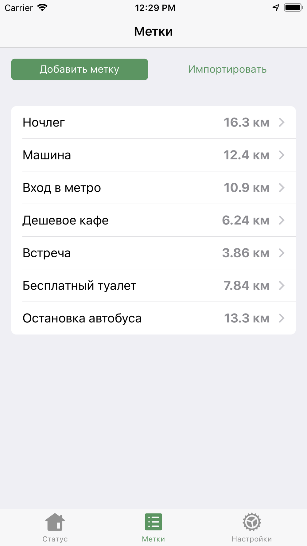 С помощью GeoApp вы сможете создать список геометок и всегда иметь возможность узнать как далеко они находятся и в каком направлении.