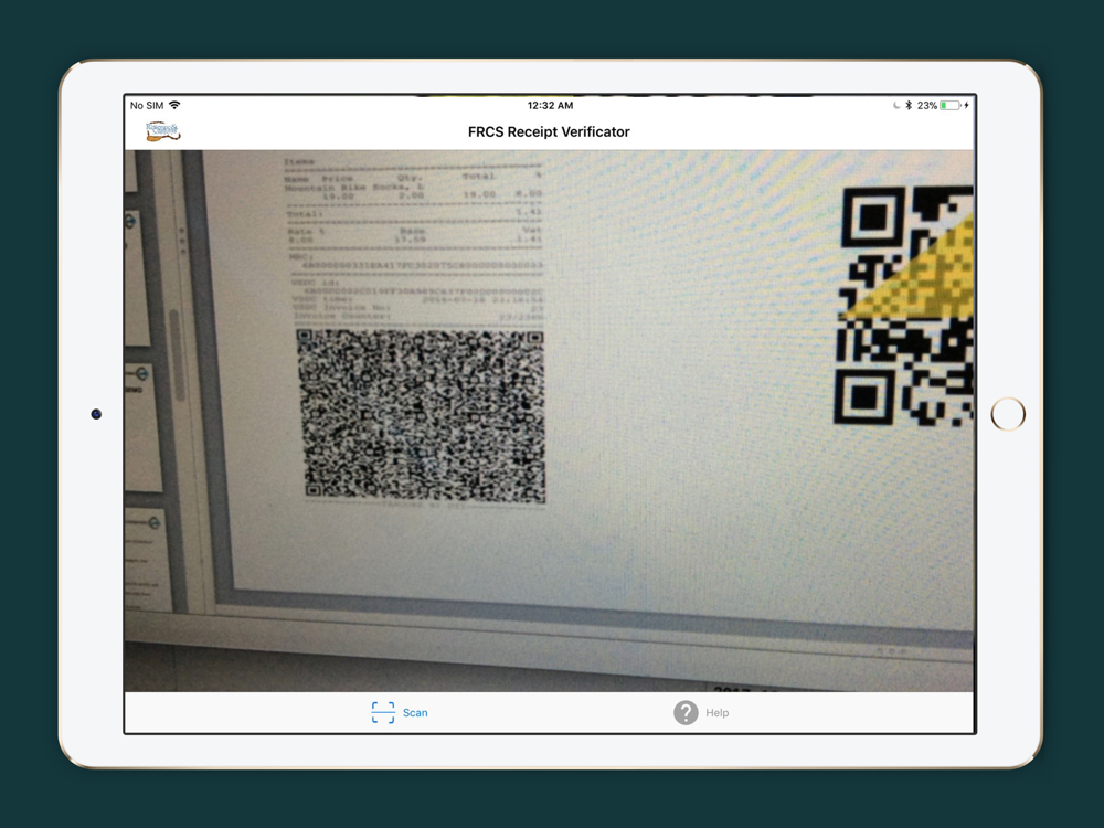 In order to take a scan of a QR code, open the Fiji Revenue and Customs Service Receipt Verificator and place the camera over the QR code - you won't have to take a photo or tap a scan button, because Fiji Revenue and Customs Service Receipt Verificator will automatically recognize the QR code, and if the code contains a valid URL, you will automatically be taken to the Fiji Revenue and Customs Service website where you can check the invoice status. If the QR code contains an invalid URL then the app will display the error message giving you the option to try again.