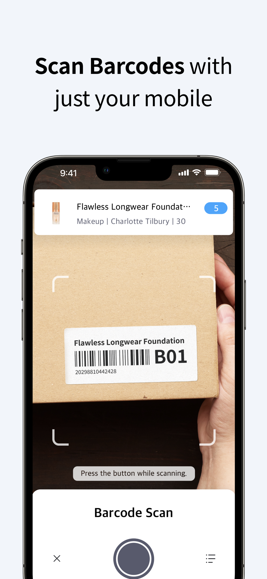 - ‘Mobile Barcode Scan’ with a smartphone camera or external barcode scanner.