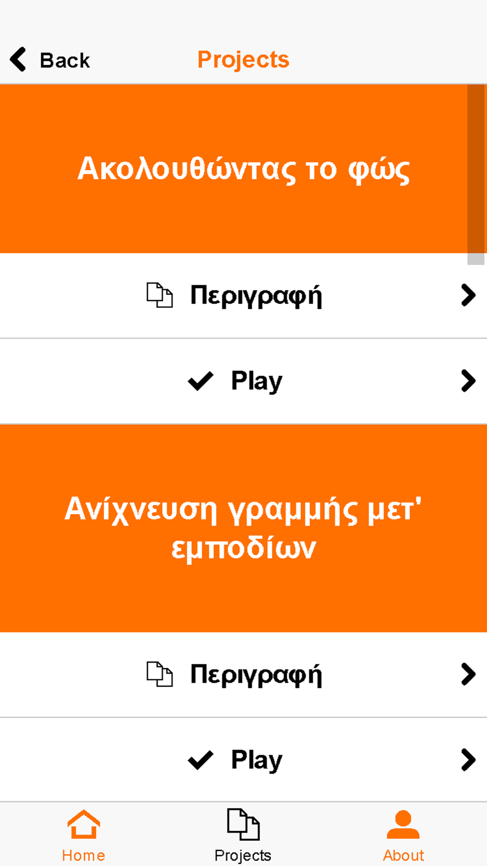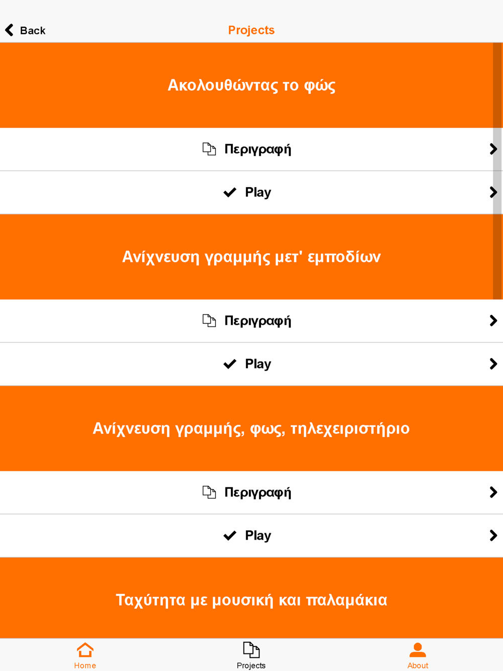 Η εφαρμογή περιέχει έτοιμα σενάρια τα οποία μπορούν να φορτωθούν στο ρομπότ Edison v2.