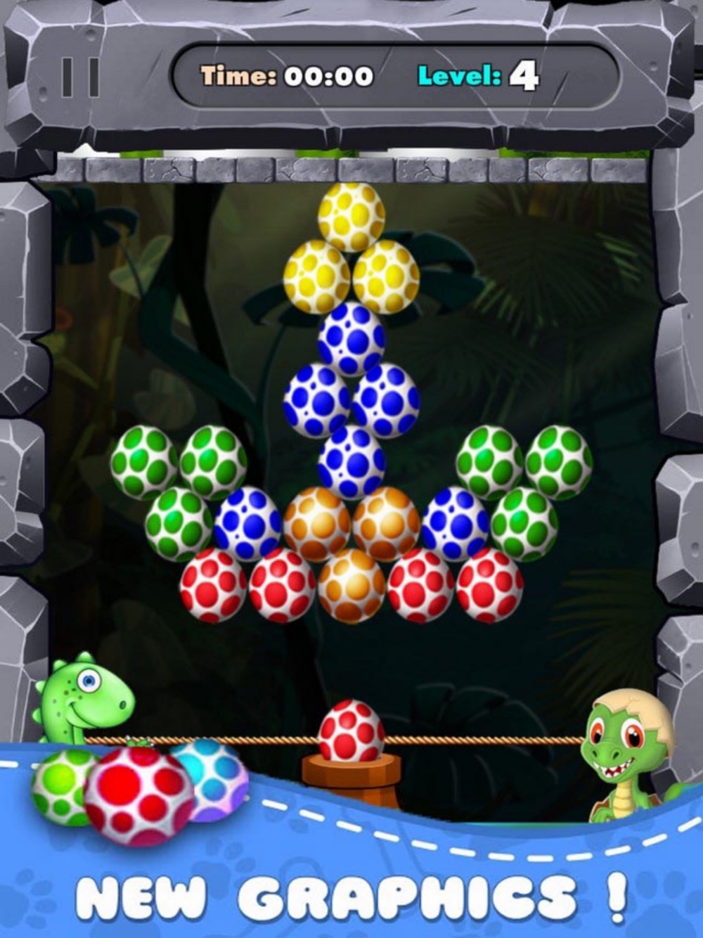 New Eggs Shoot 2018 - this is best version of bubble shoot game which is very amazing and suitable for all age: child, teenage, adults.Use your ability to observe, with the ability to judge, shoot eggs to arrange at least 3 eggs of the same color. Shoot the dinosaur eggs to explode and you will get points, the more the egg frame explodes, the more eggs fall the more points, this is an easy game but hard to score high, try playing with friends to see who gets high scores. More in the middle of the game log logs offline!