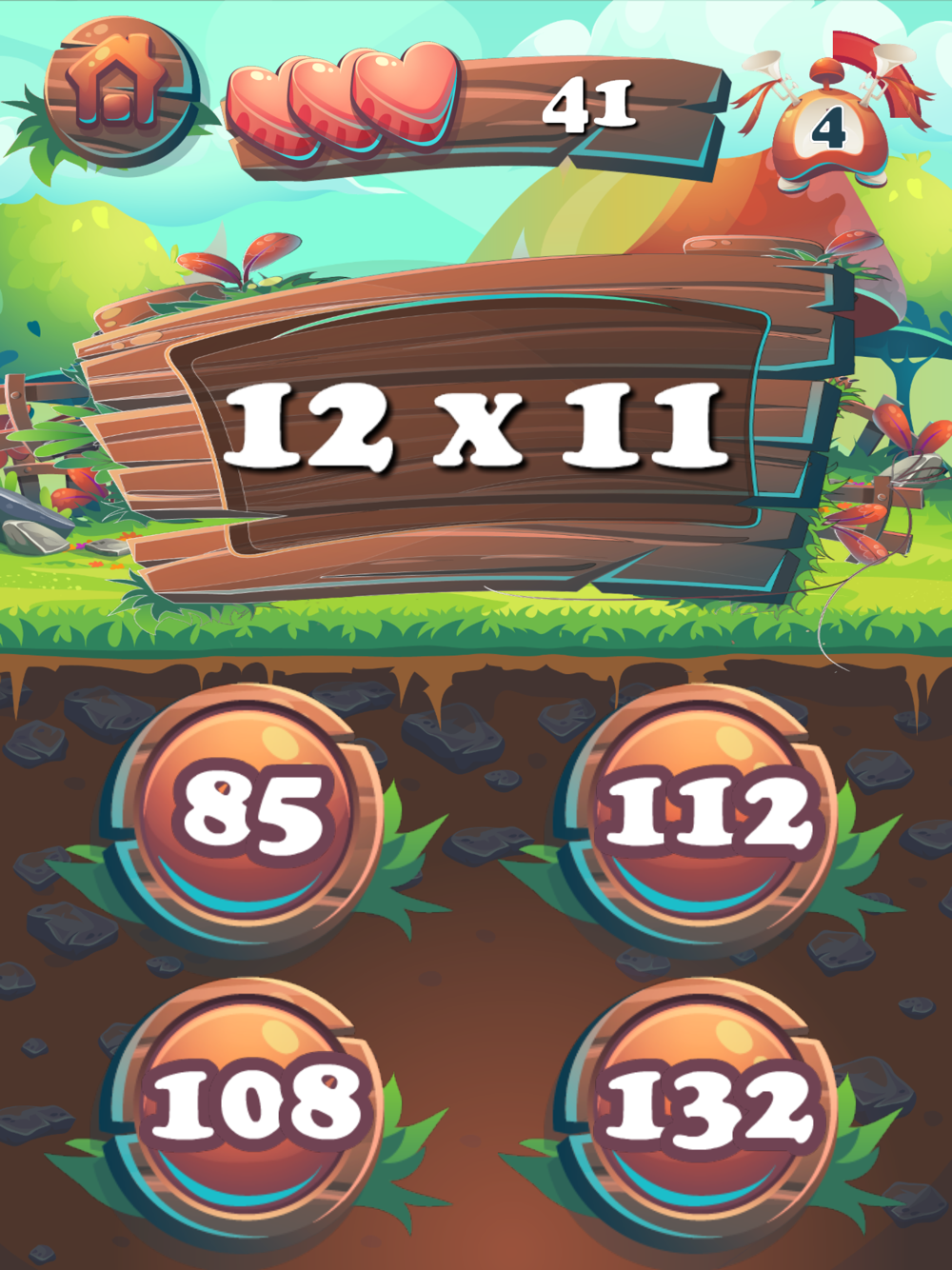 Times Tables 12x12 works like a quiz. The first step is to select the table, a question will appear on the screen along with four options. On tapping the correct option, few points will be added to the player’s score tally. On the other hand, tapping the wrong answer will cost the player a life. The players will have to tap an option in limited time period. Failing to do so will also cost them a life. However, the option of “more time” can come to their rescue. Availing this option will give them more time to complete the quiz.