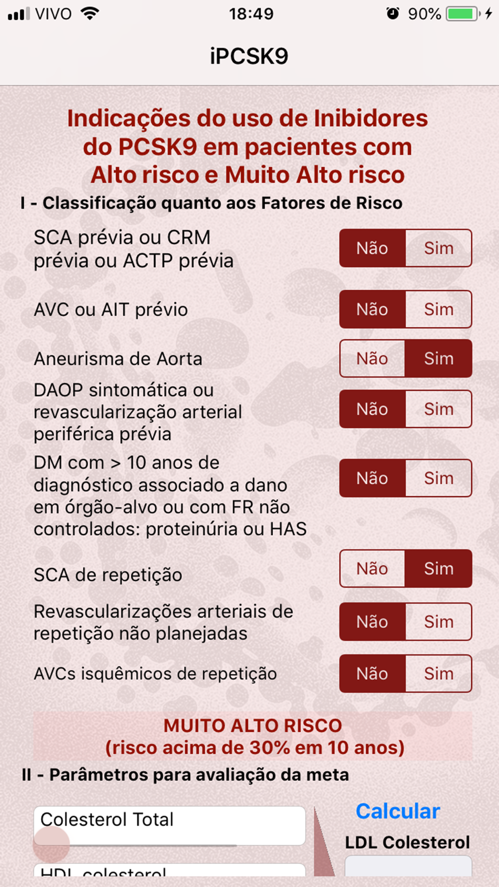 Indicações do Uso de Inibidores da PCSK9 em Pacientes com Alto Risco e Muito Alto Risco Cardiovascular.