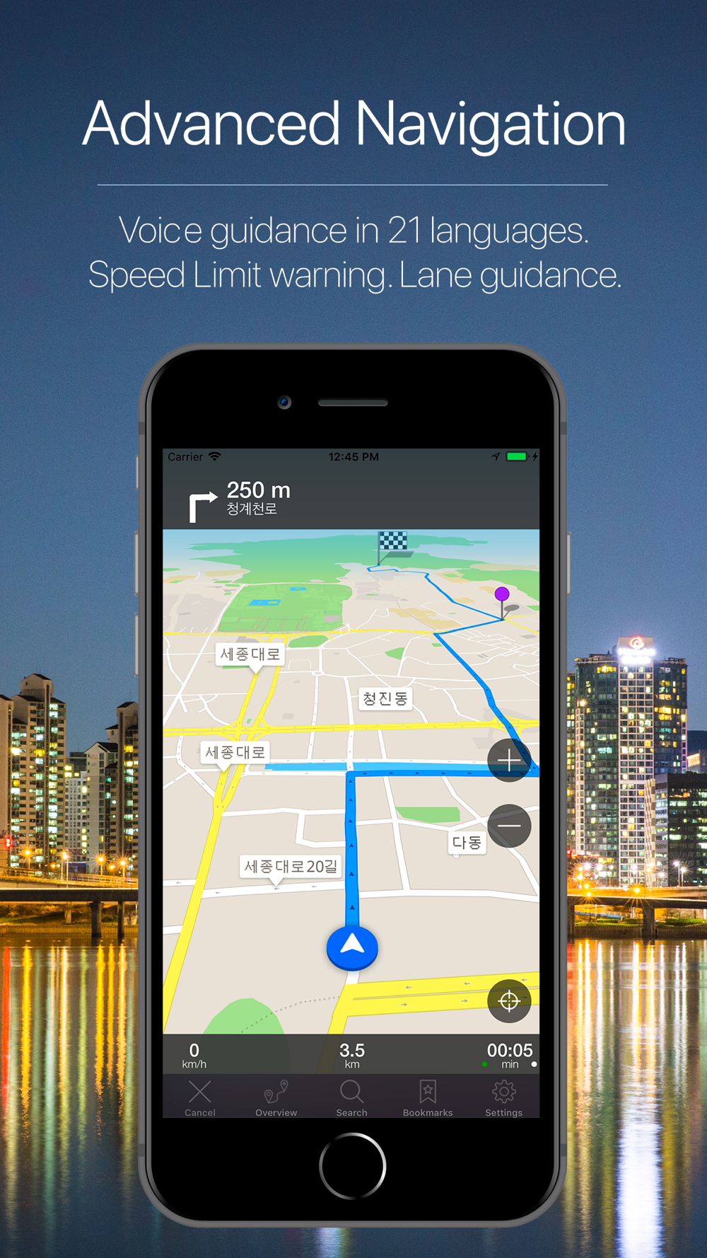 • Turn-by-turn voice-guidance in 21 languages