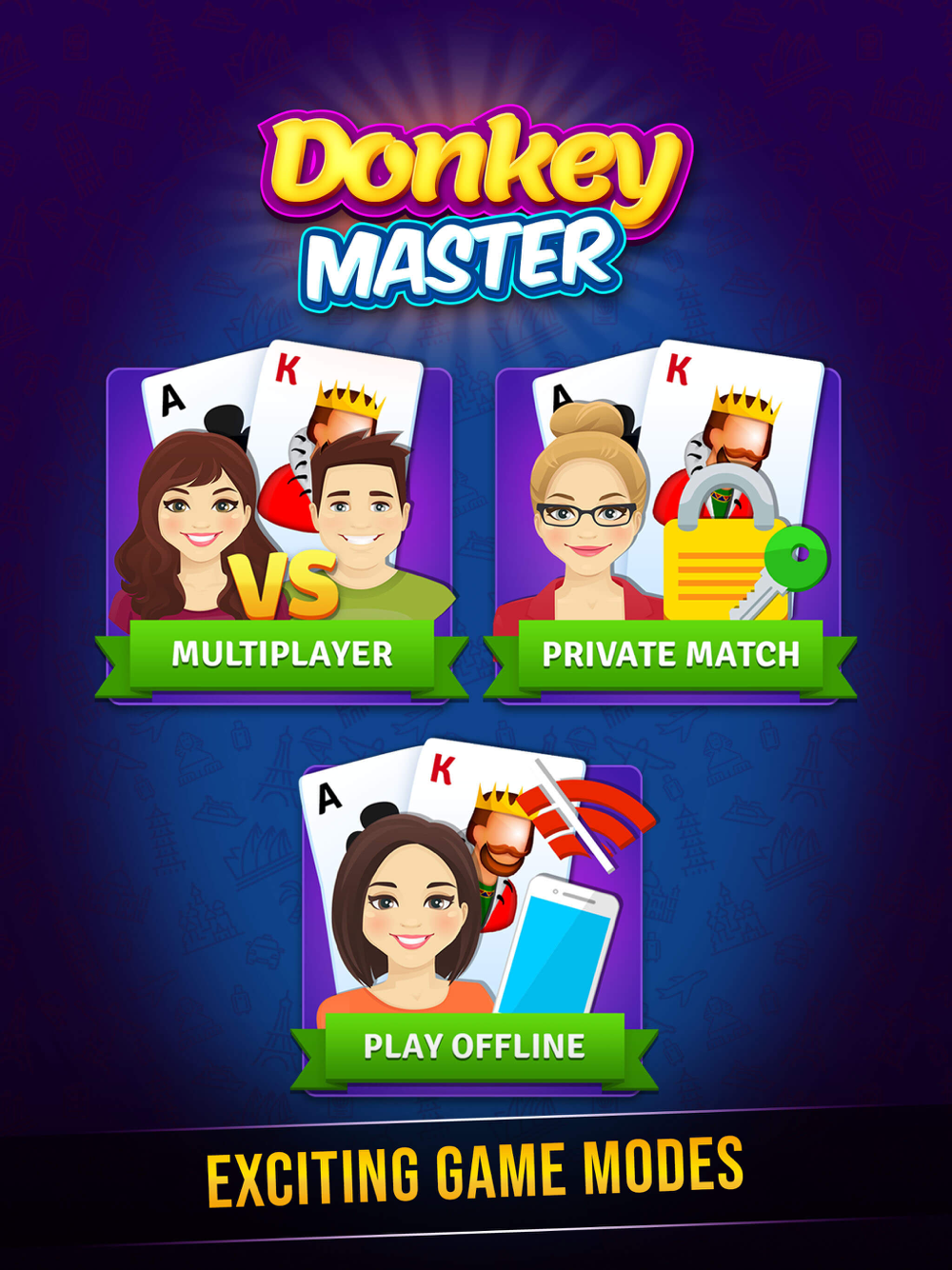 Donkey Master is Online Multiplayer adaptation of your childhood favorite card game Donkey! Donkey card game is played in India in every household at family get-together and parties.