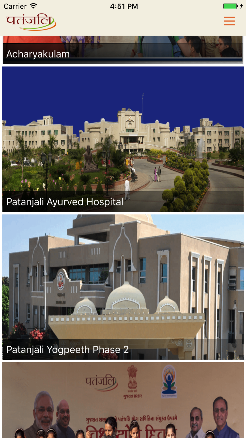 Param Pujya Baba Ramdev has made Yoga and Ayurved a household name and has helped improve the health of millions of people worldwide. Patanjali Mobile App extends all the health benefits of Patanjali at your fingertips. This app provides videos of Yoga for weight loss as well as for other related needs. Our mobile app can help you improve your health by doing Yoga any time of the day at the comfort of your home. It also has a lot useful information about Free Yoga classes in your state, Arogya Kendra, Chikitsalyas, Ayurvedic treatment, Events and many more.
