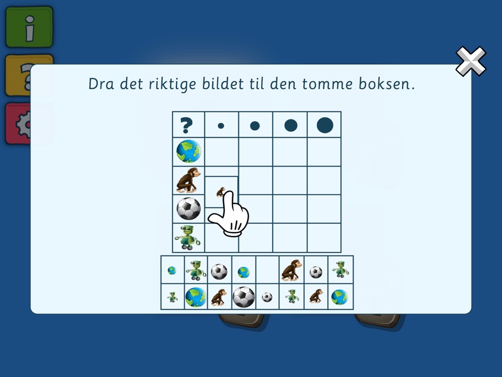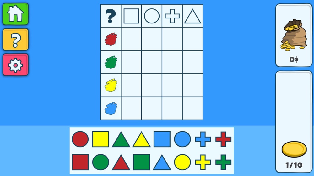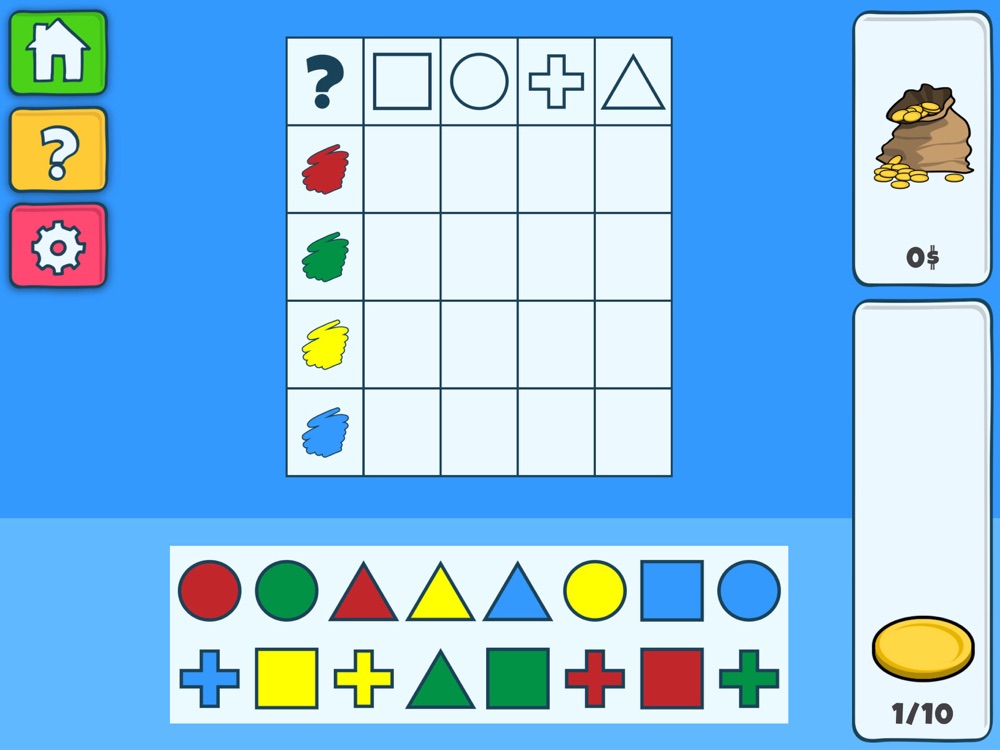 I "Matrise" skal spilleren plassere figurer i et rutenett slik at de passer inn med kravene i første rad og første kolonne.