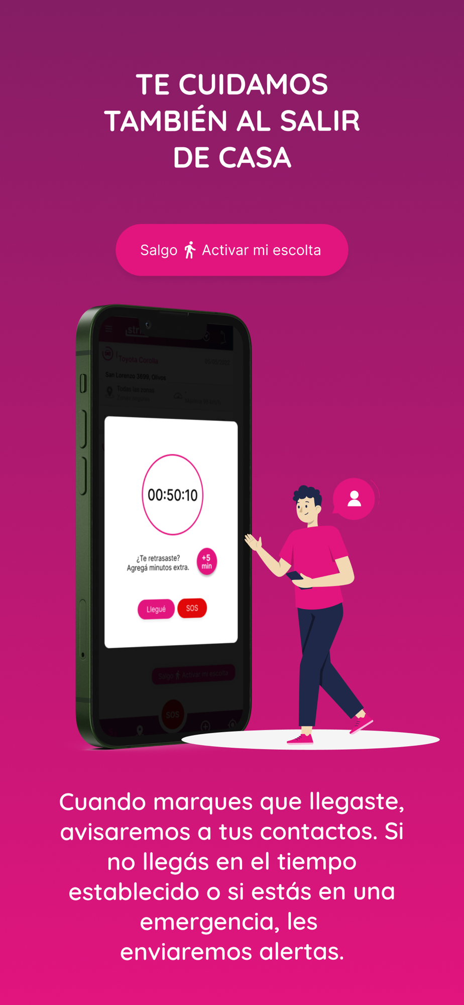 Activá la función “Escolta” al salir de casa, programá el cronómetro y le avisaremos a tus contactos para que puedan acompañarte desde su teléfono.